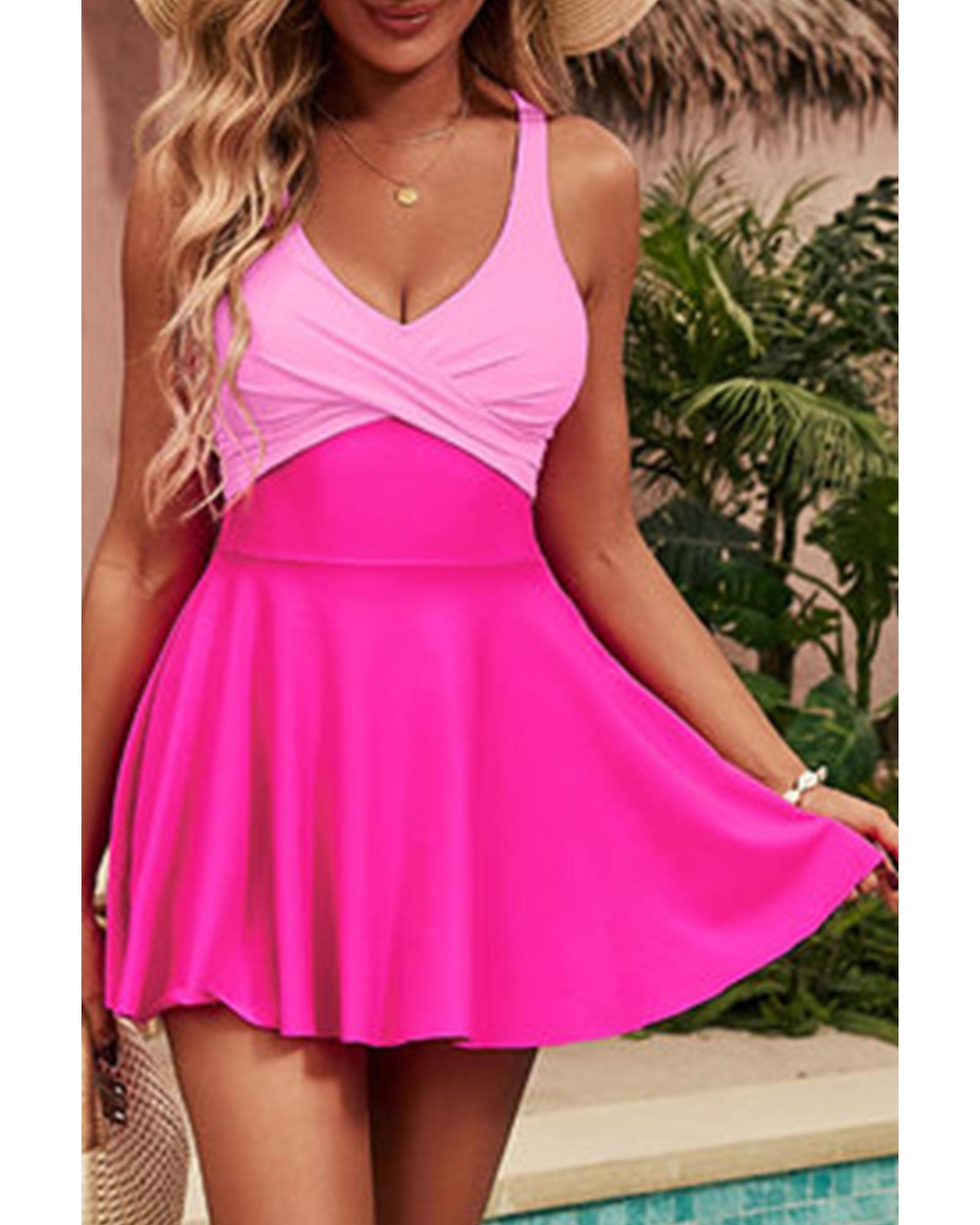 Rose Red Crisscross Straps Tie Back Flared One Piece Swimsuit – L