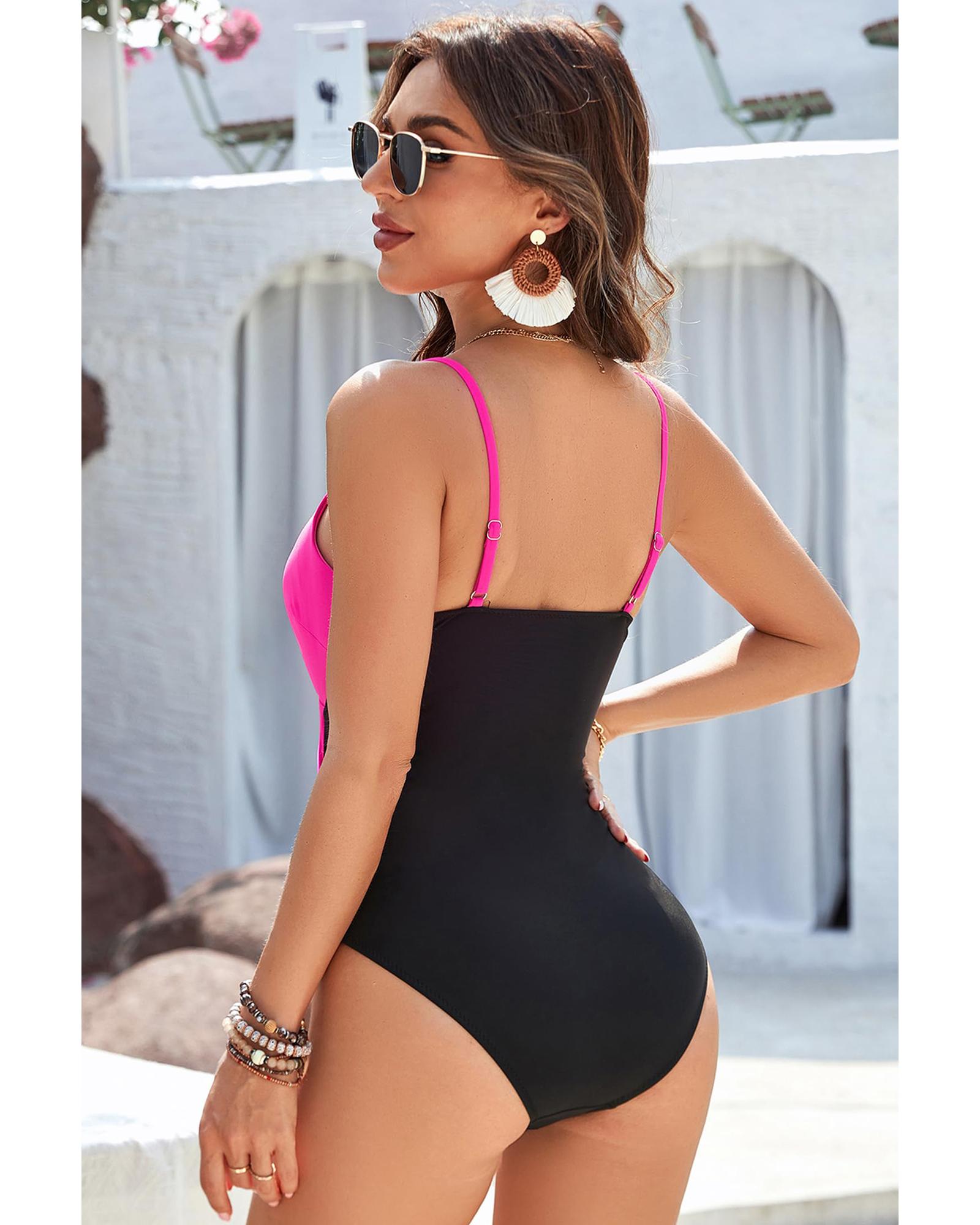 Rose Red Crossover Colorblock Cutout One Piece Swimsuit – XL
