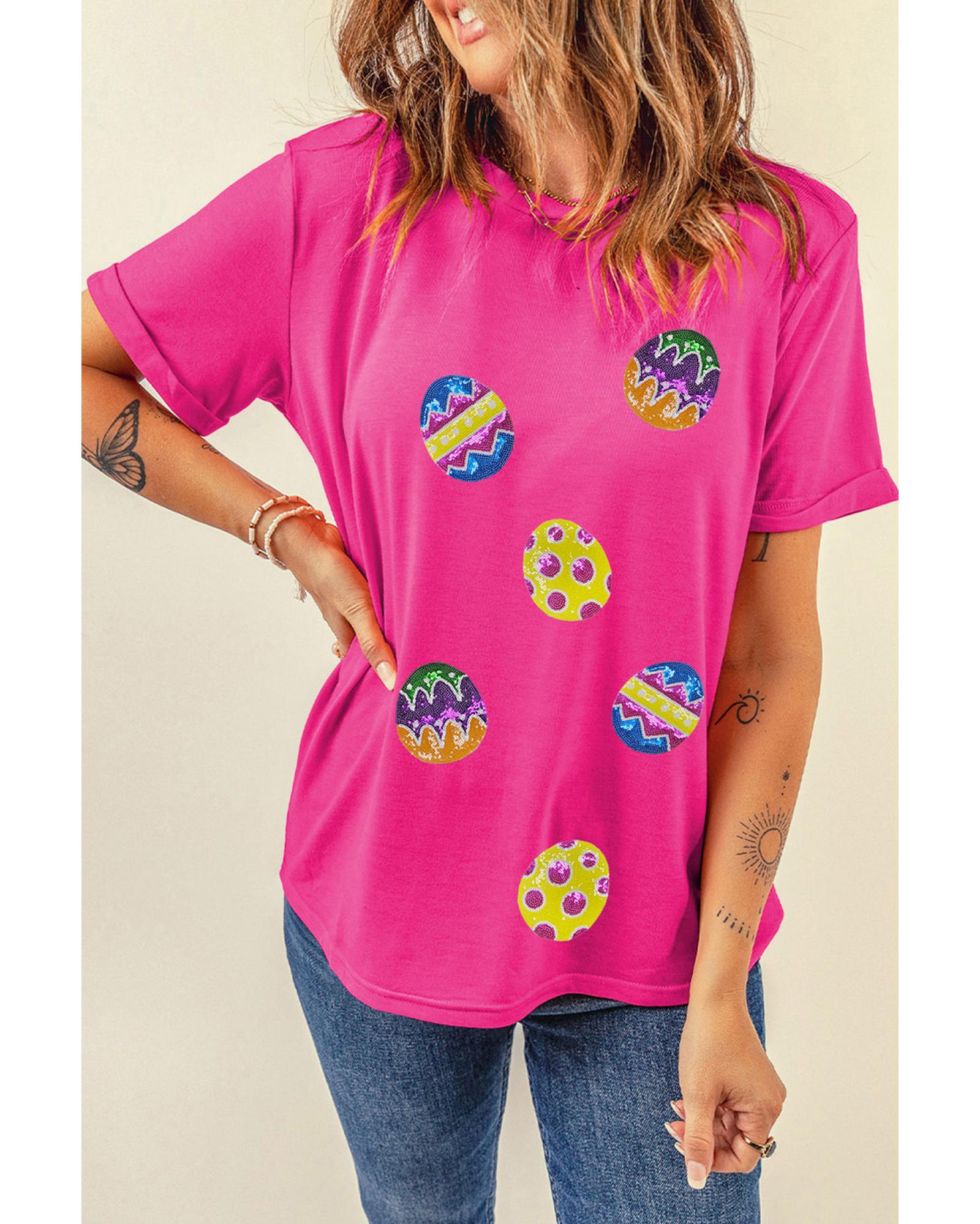 Rose Red Easter Eggs Patched Crew Neck Graphic Tee – M