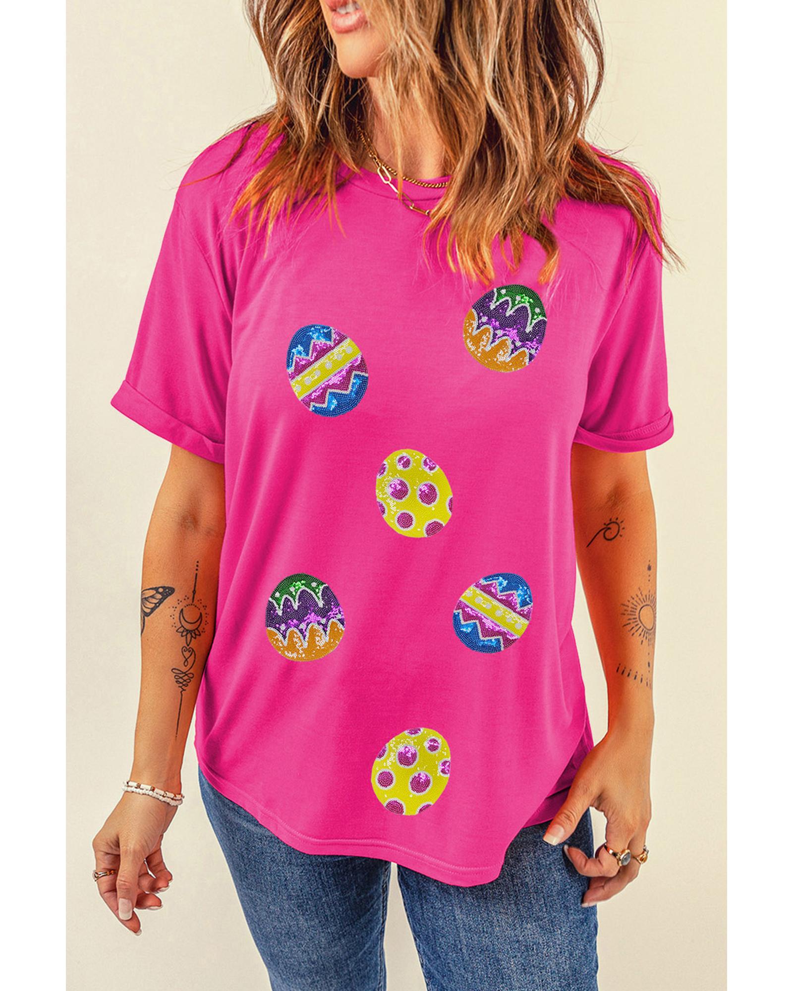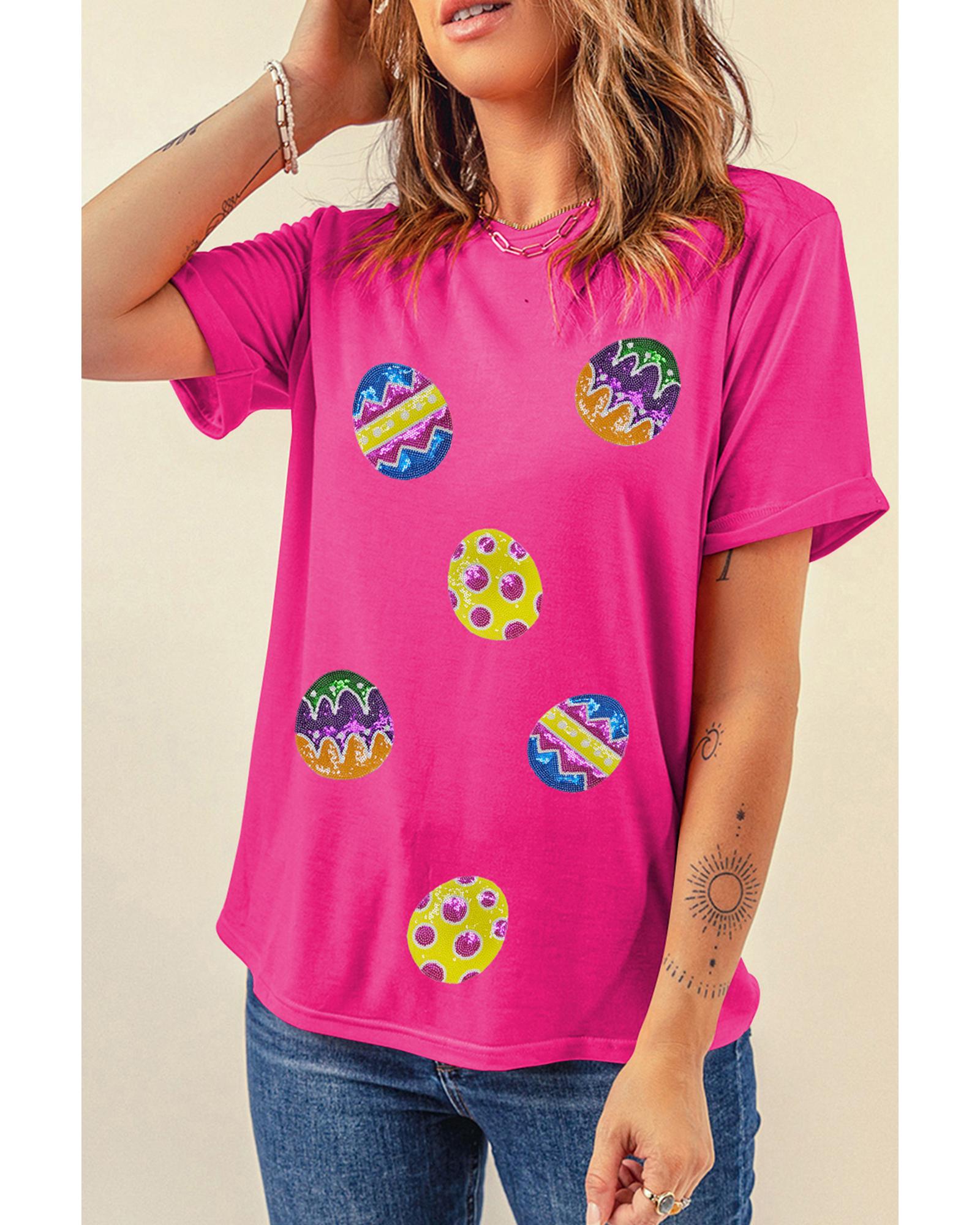 Rose Red Easter Eggs Patched Crew Neck Graphic Tee – S