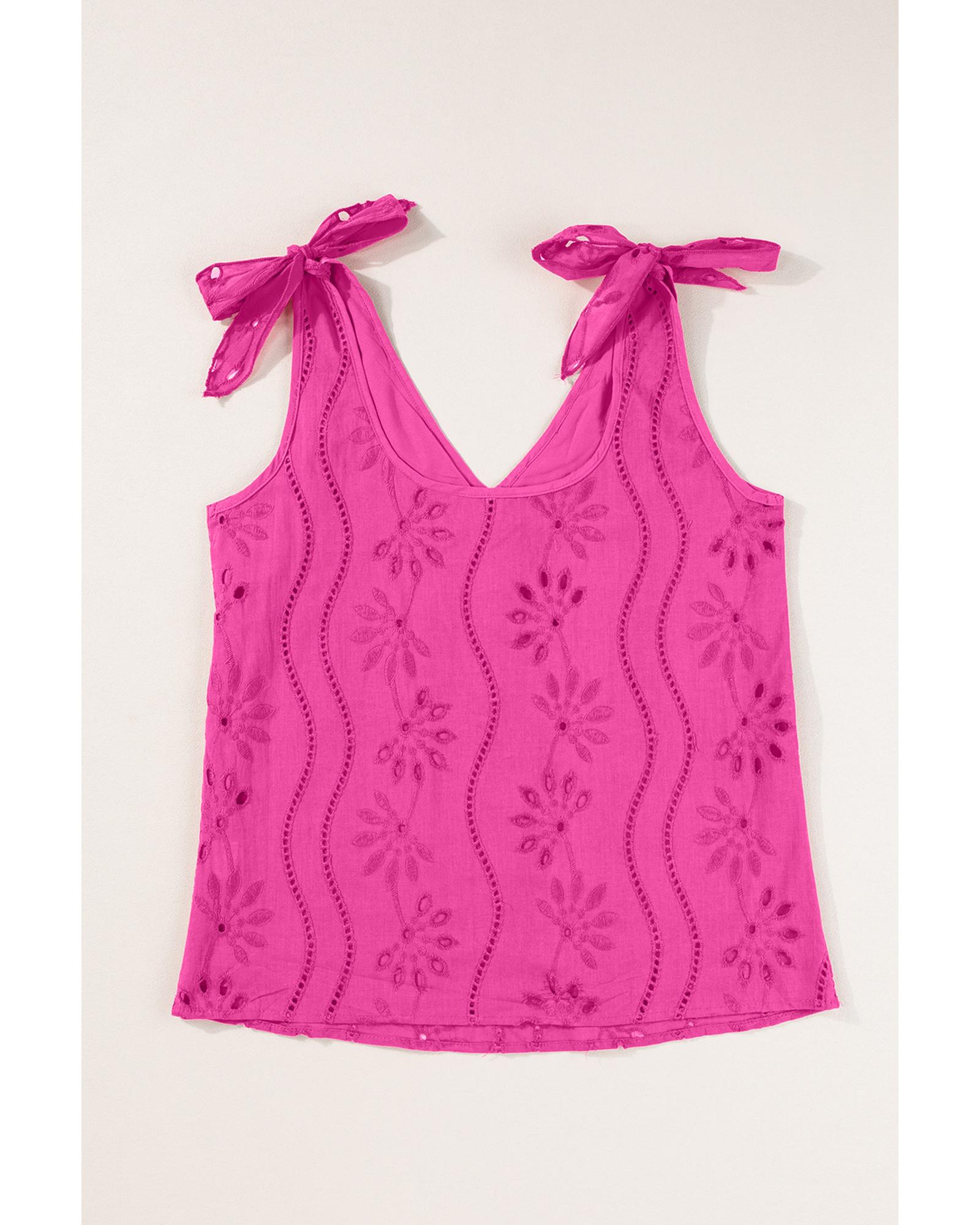 Rose Red Embroidery Patterned Knotted Straps V Neck Tank Top – L