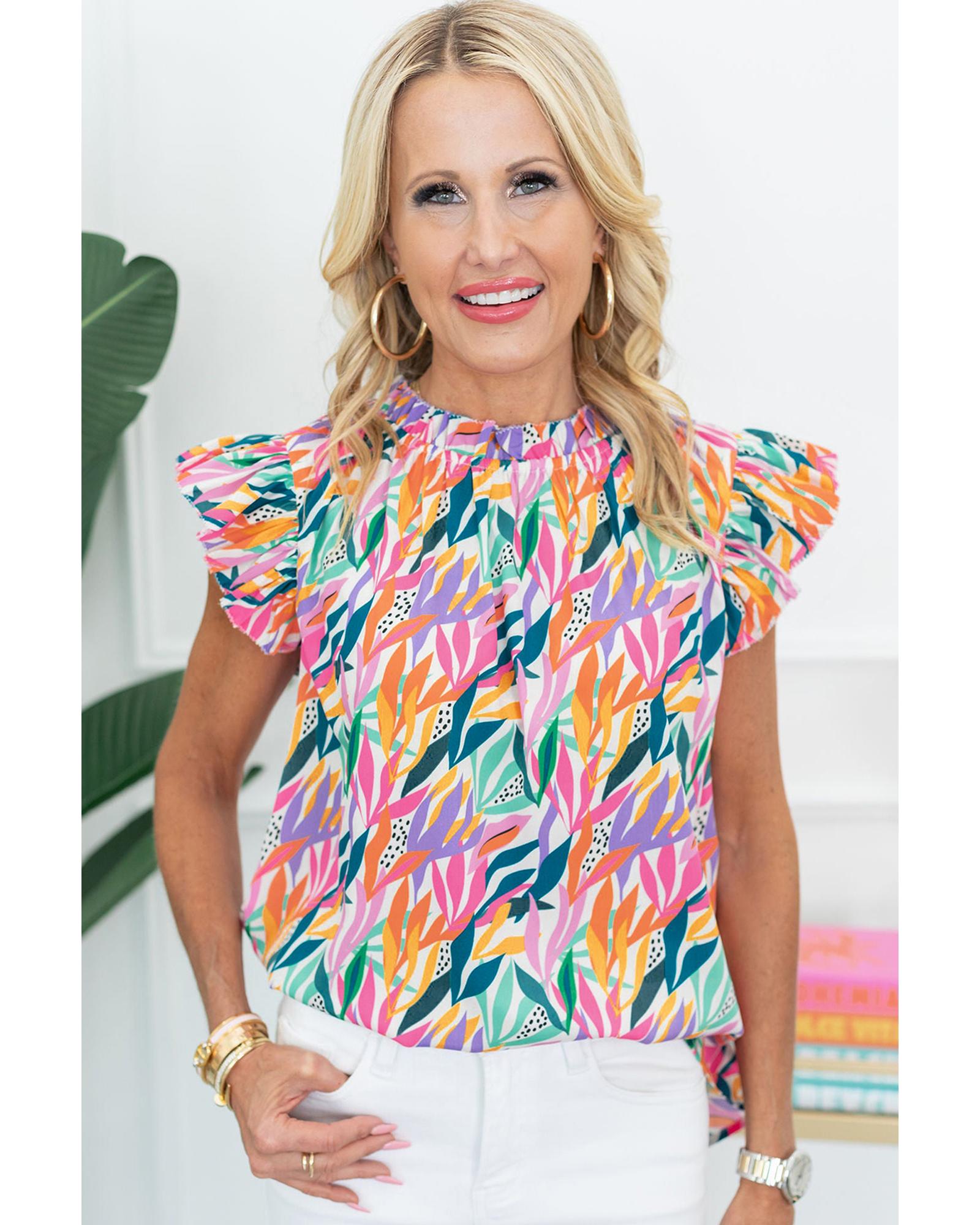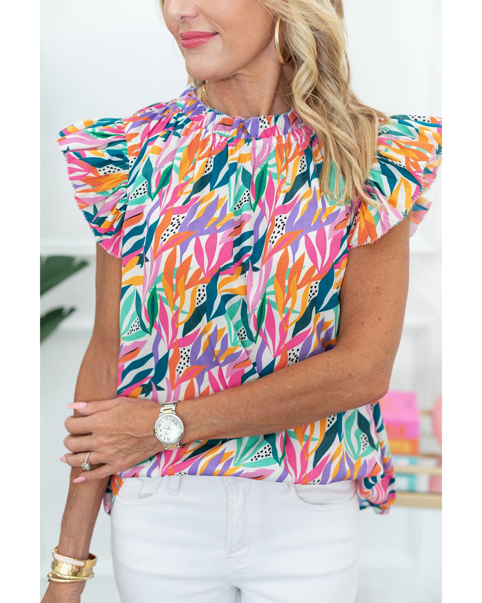 Rose Red Floral Print Ruffled Flutter Sleeve Blouse – S