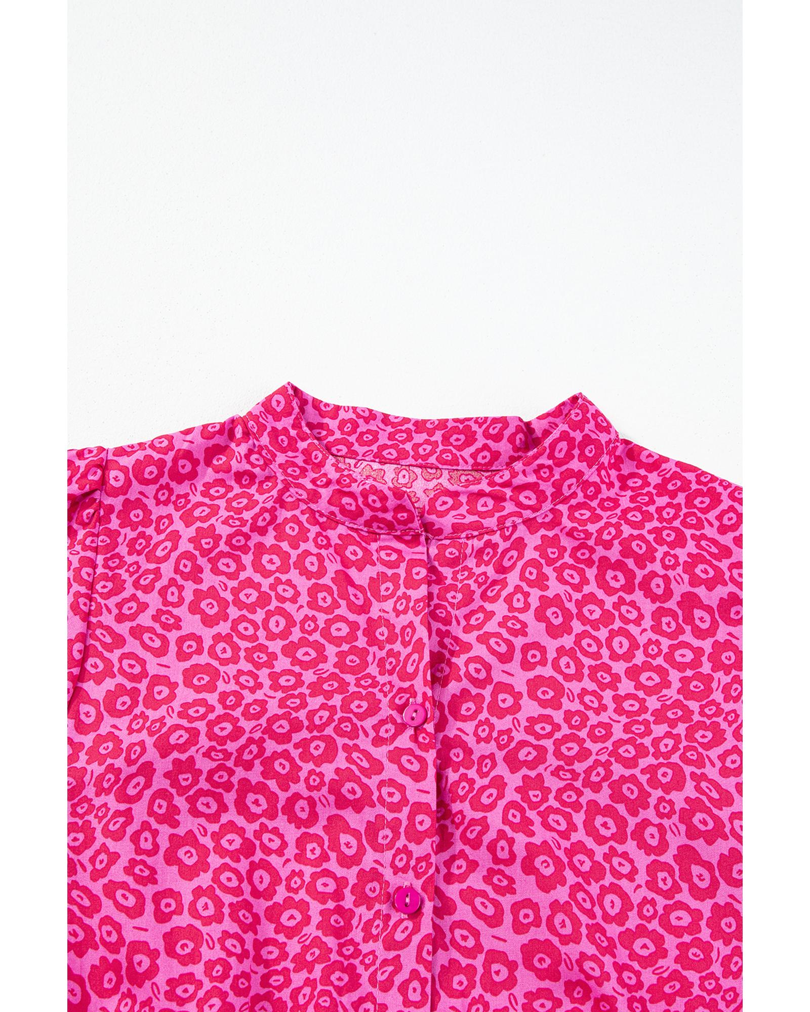 Rose Red Boho Floral V Neck Ruffle Tiered Long Dress - L