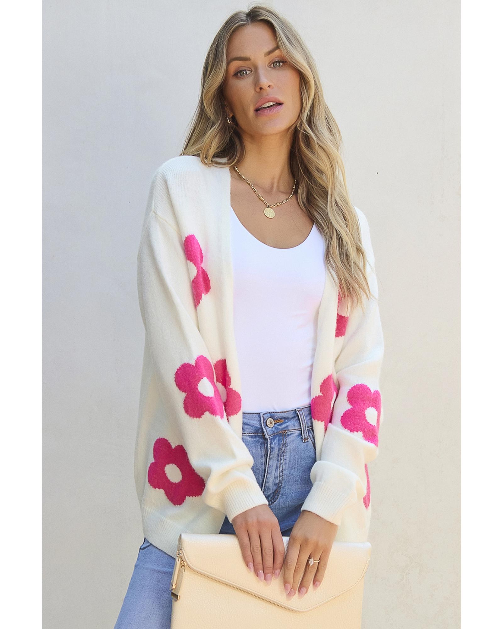 - Floral pattern adds a feminine and charming touch to the knitwear