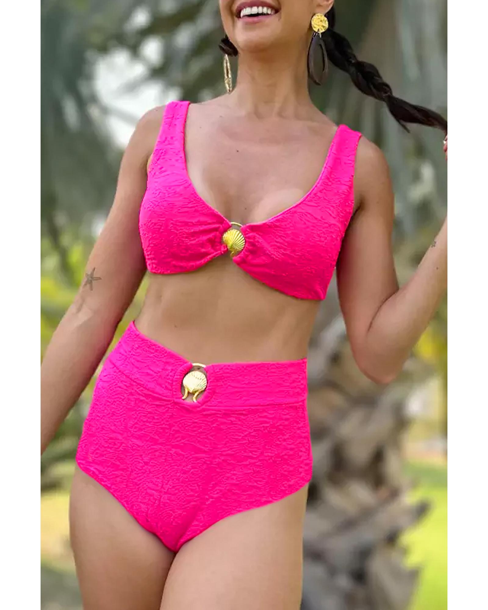 Rose Red Gold Shell Decor Wire-free Knotted 2pcs Bikini Swimsuit – XL