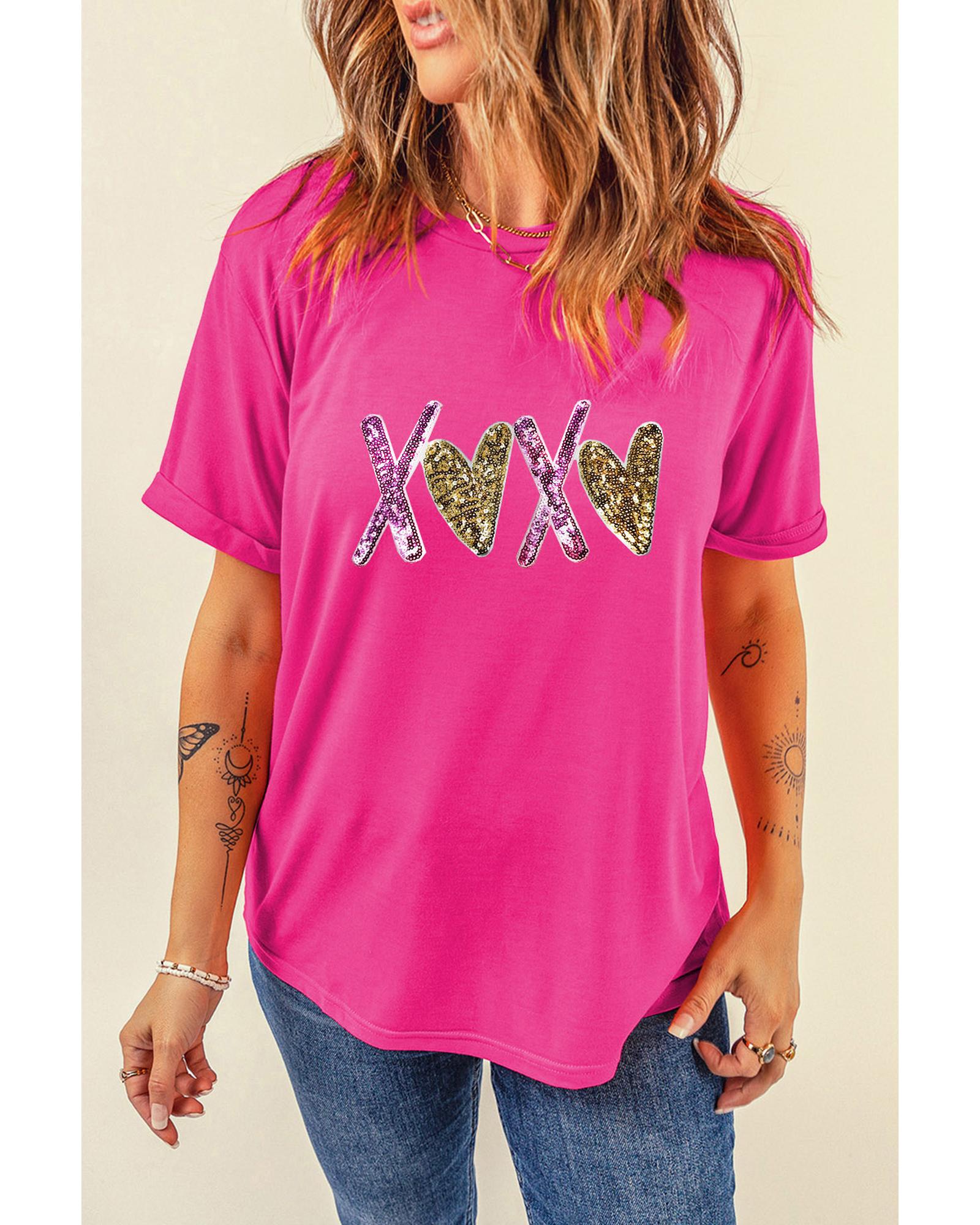 Rose Red Heart XOXO Graphic Crewneck Valentines T Shirt – S