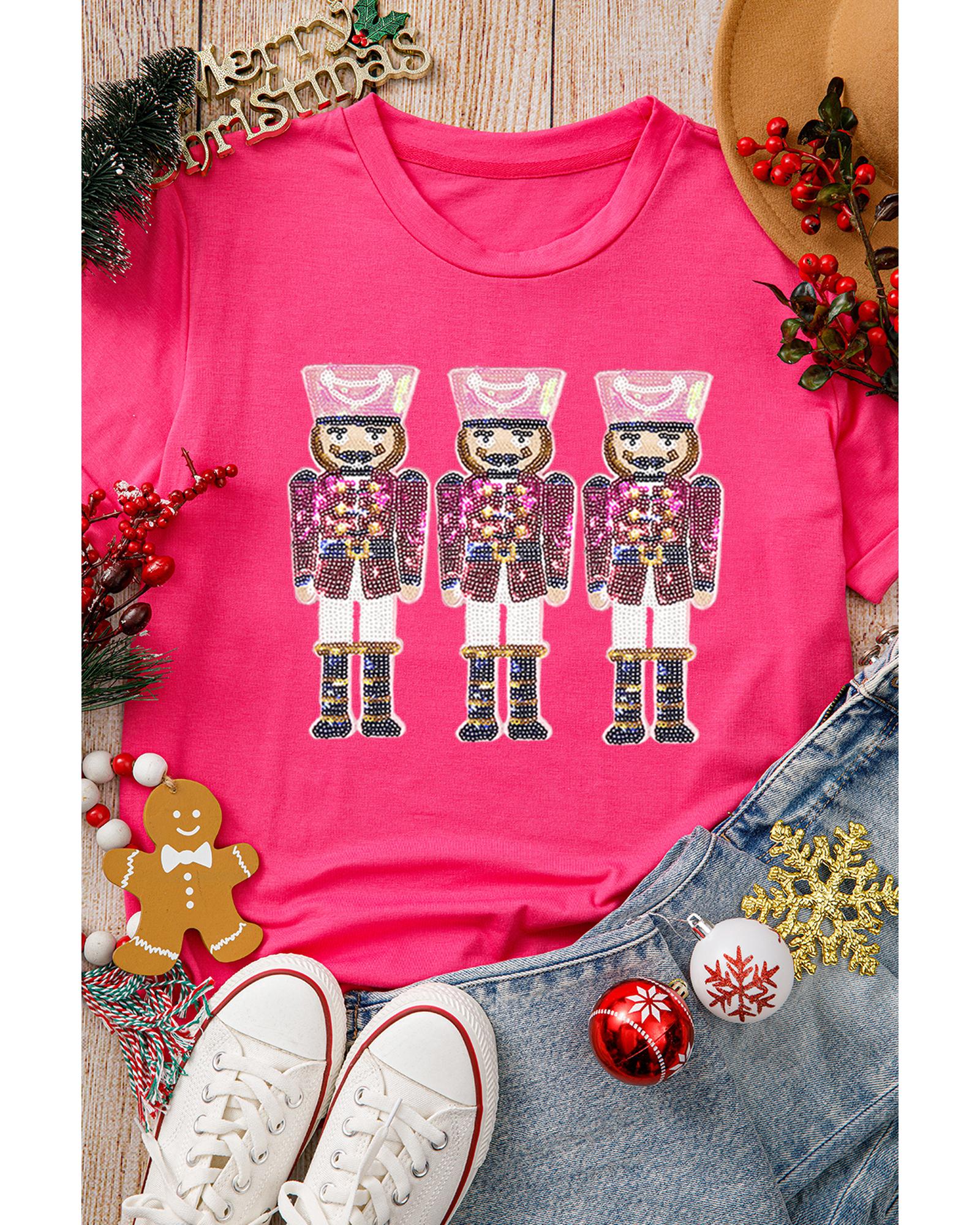 - Playful Rose Red Nutcracker Graphic Christmas Holiday T