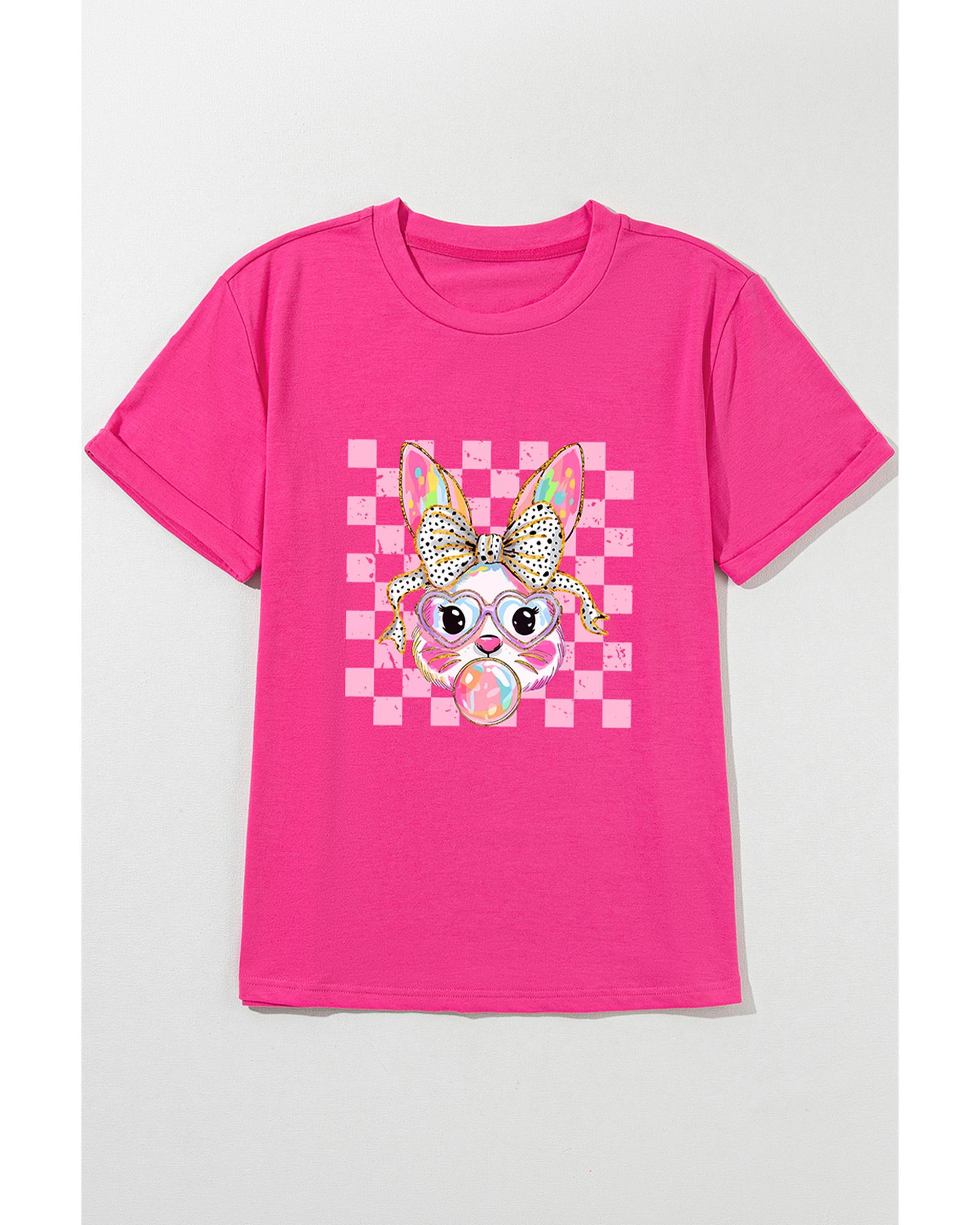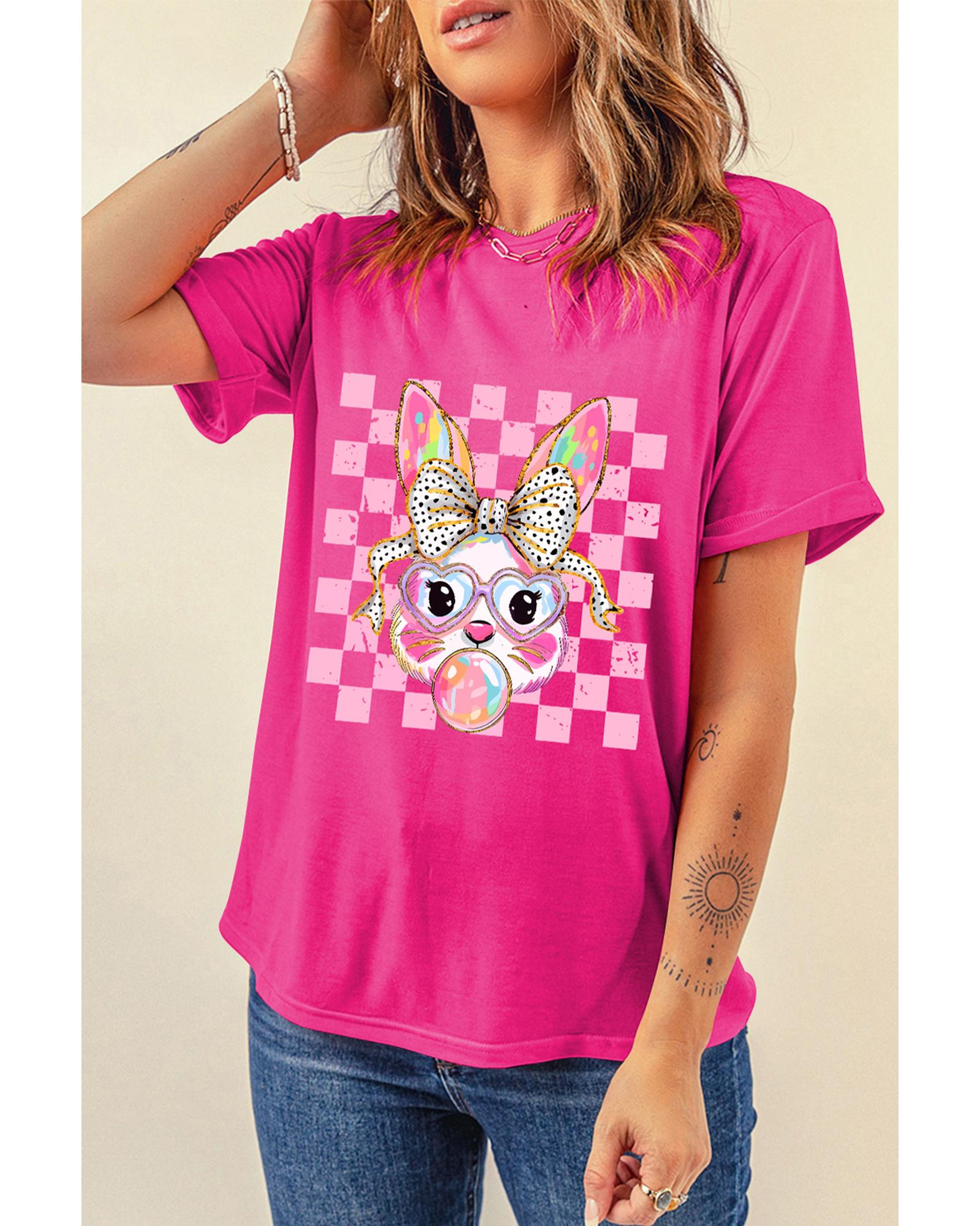 Rose Red Plaid Bubble Gum Rabbit Graphic Eater T Shirt – S