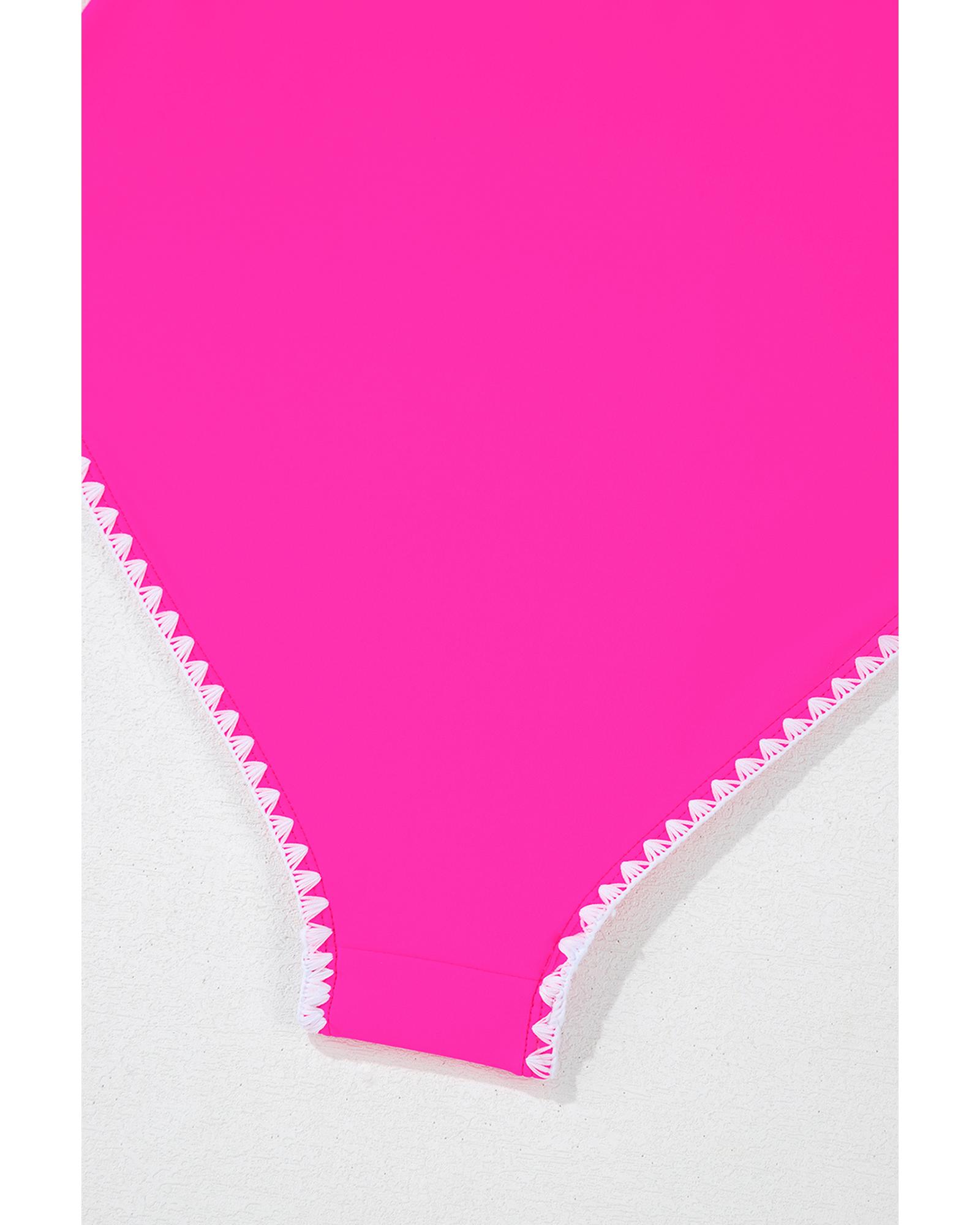 Rose Red Ric Rac Trim Contrasted Patchwork Cutout One Piece Swimsuit – M