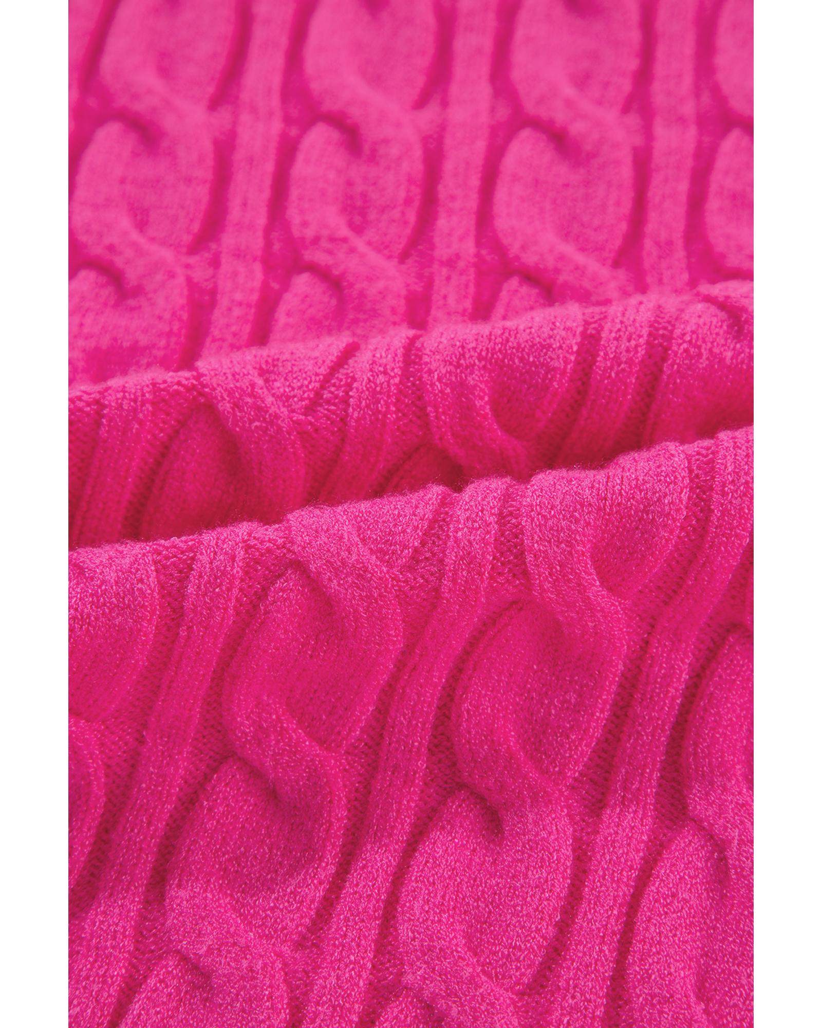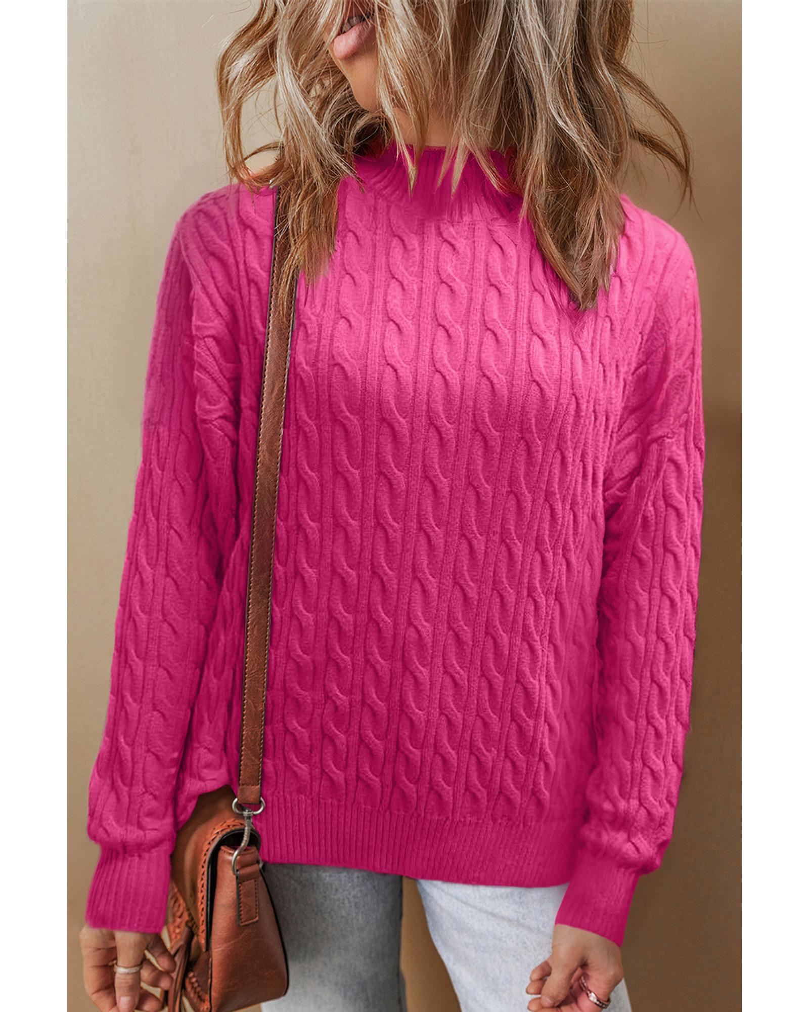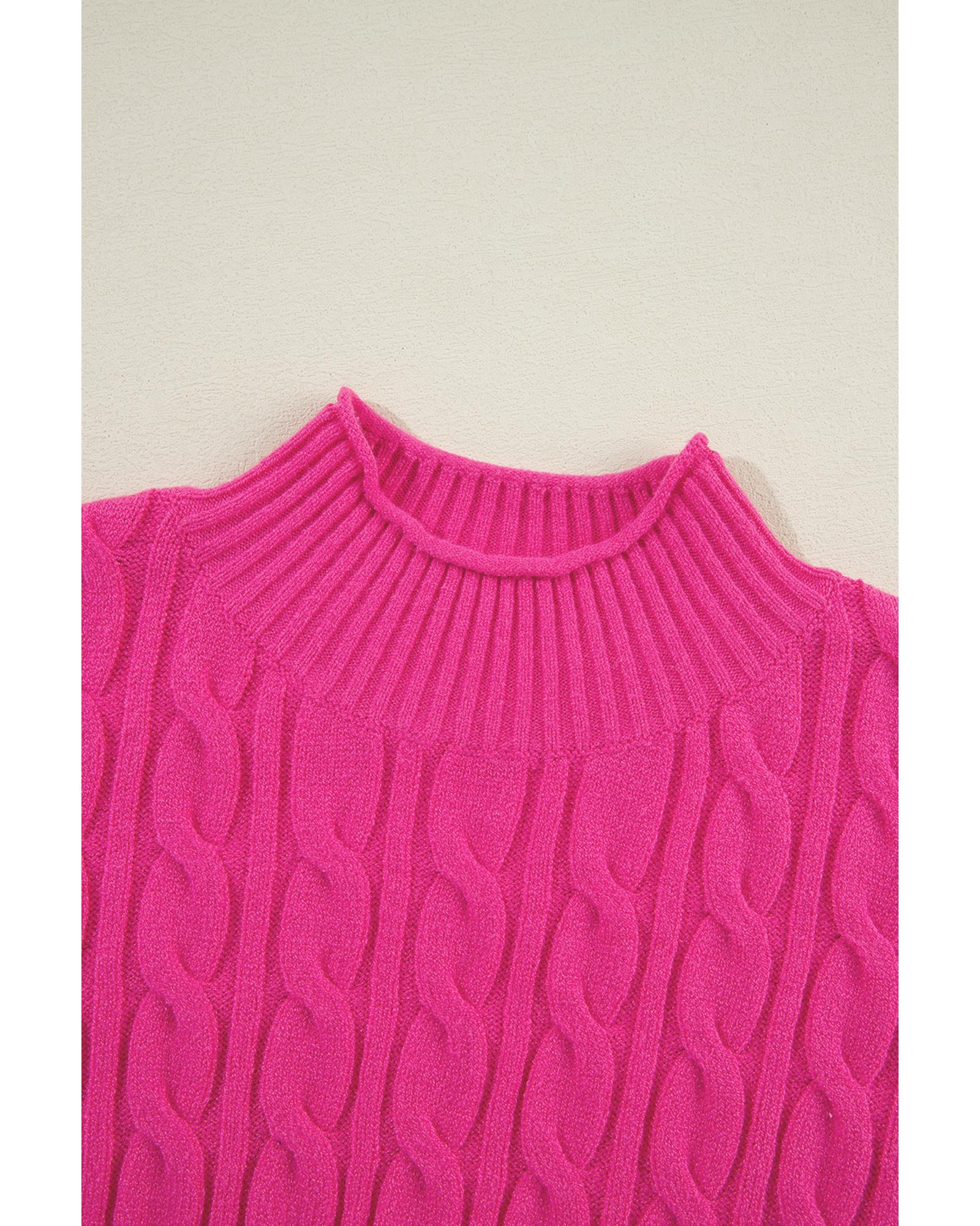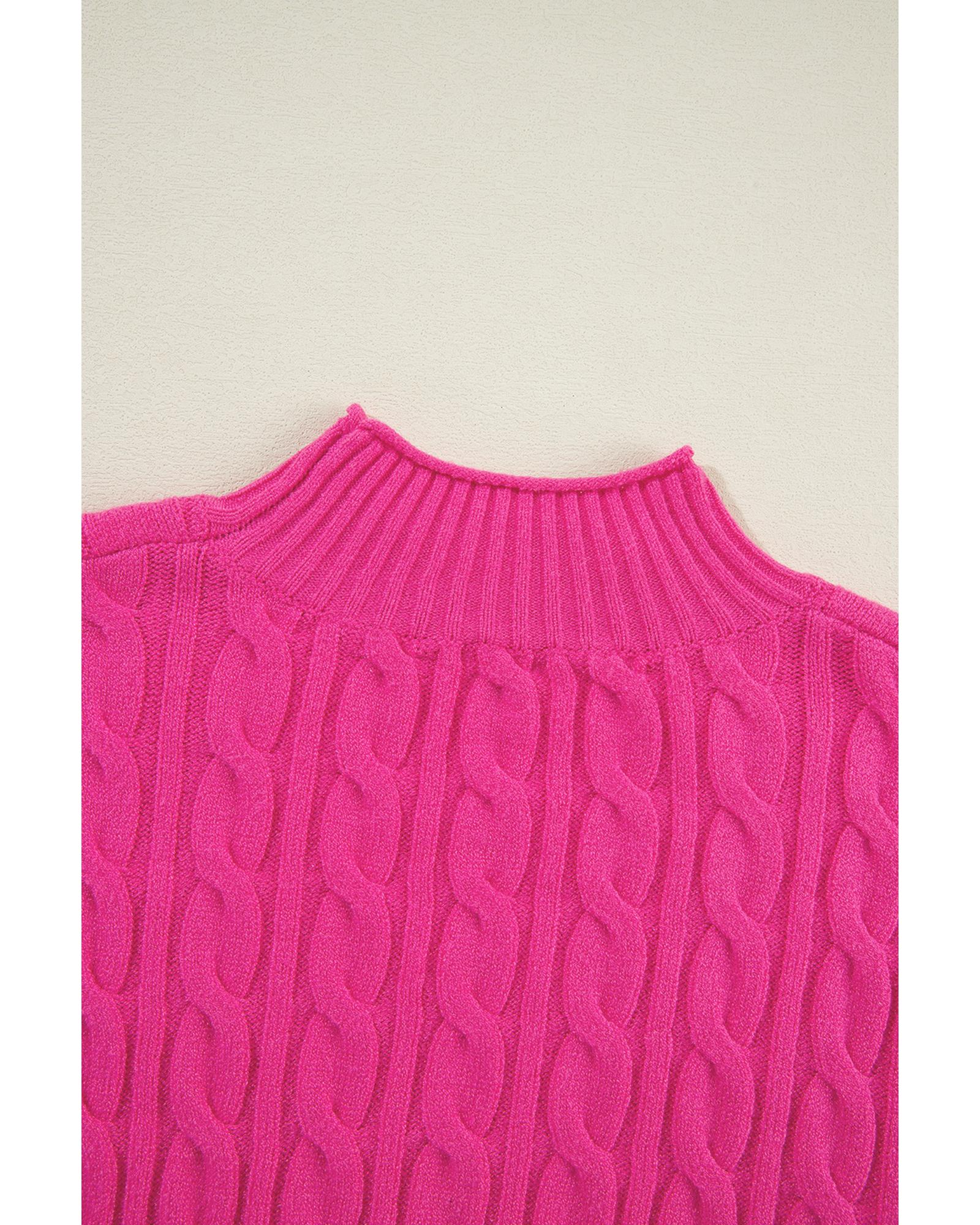 Rose Red Solid Cable Knit High Neck Drop Shoulder Sweater – M