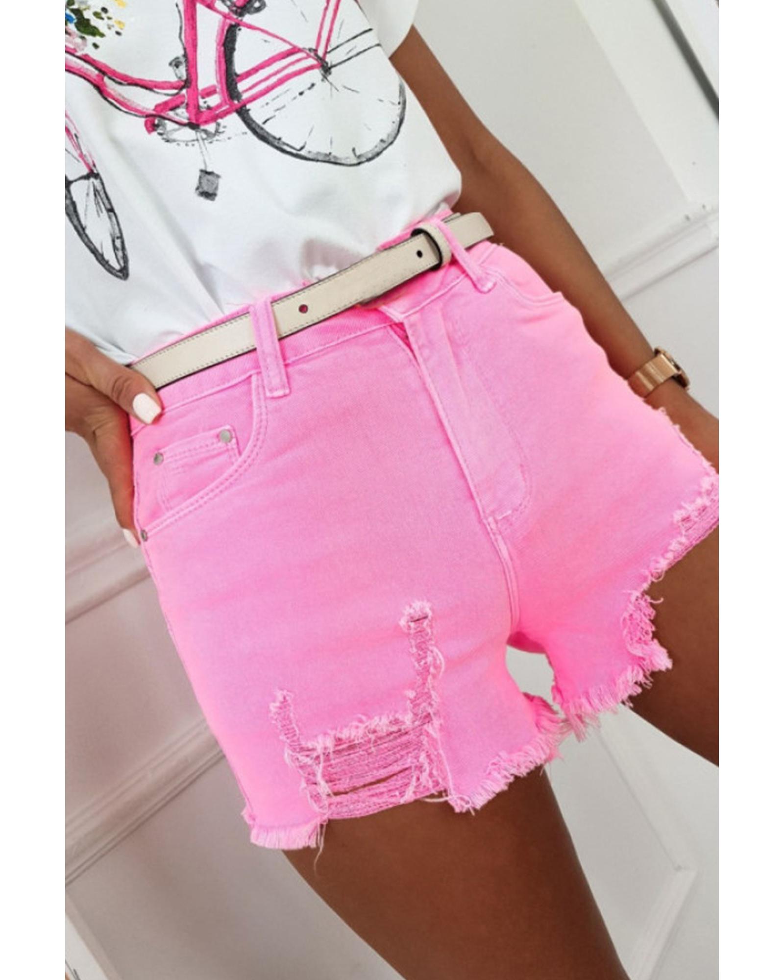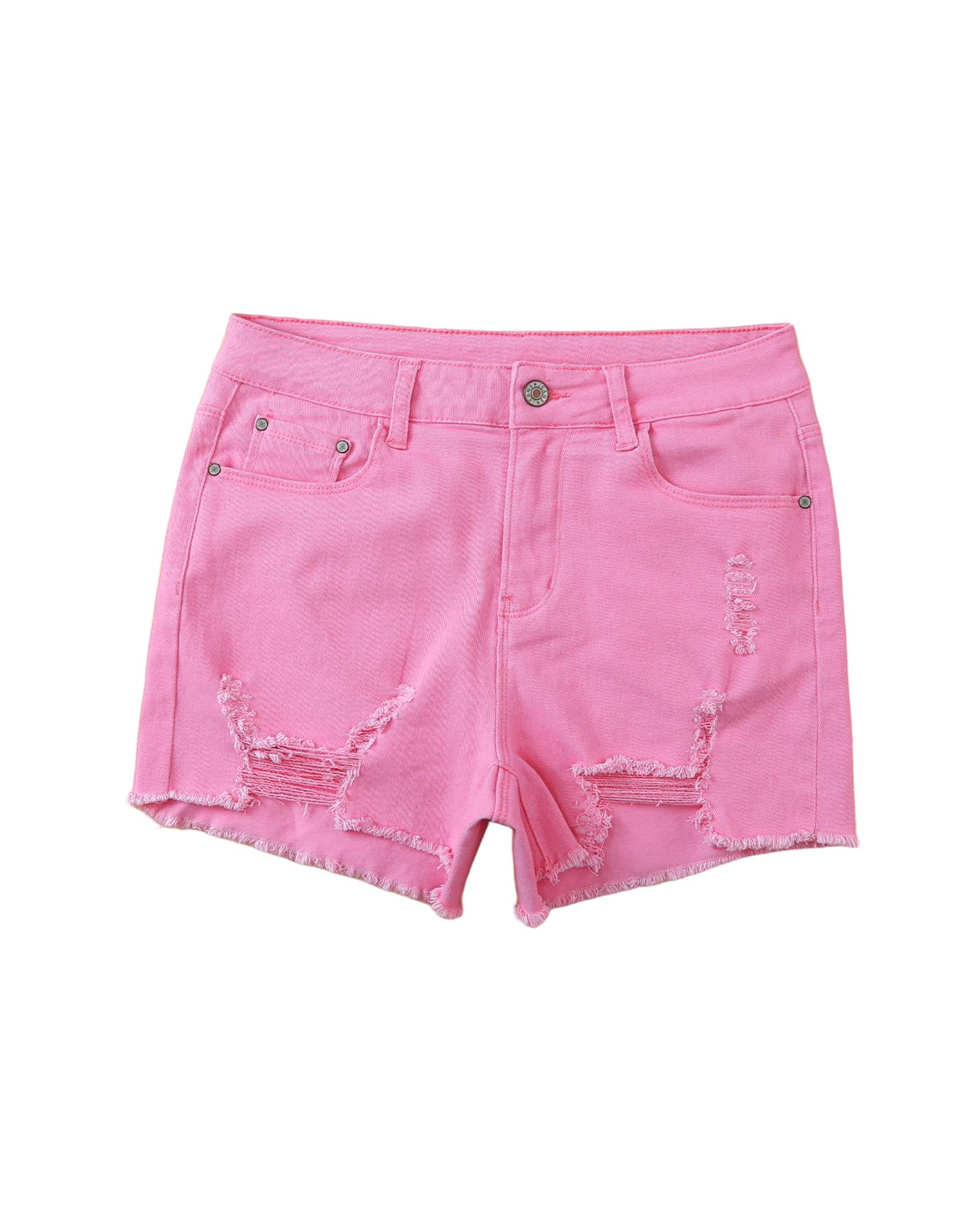 Rose Solid Color Distressed Denim Shorts – 10 US