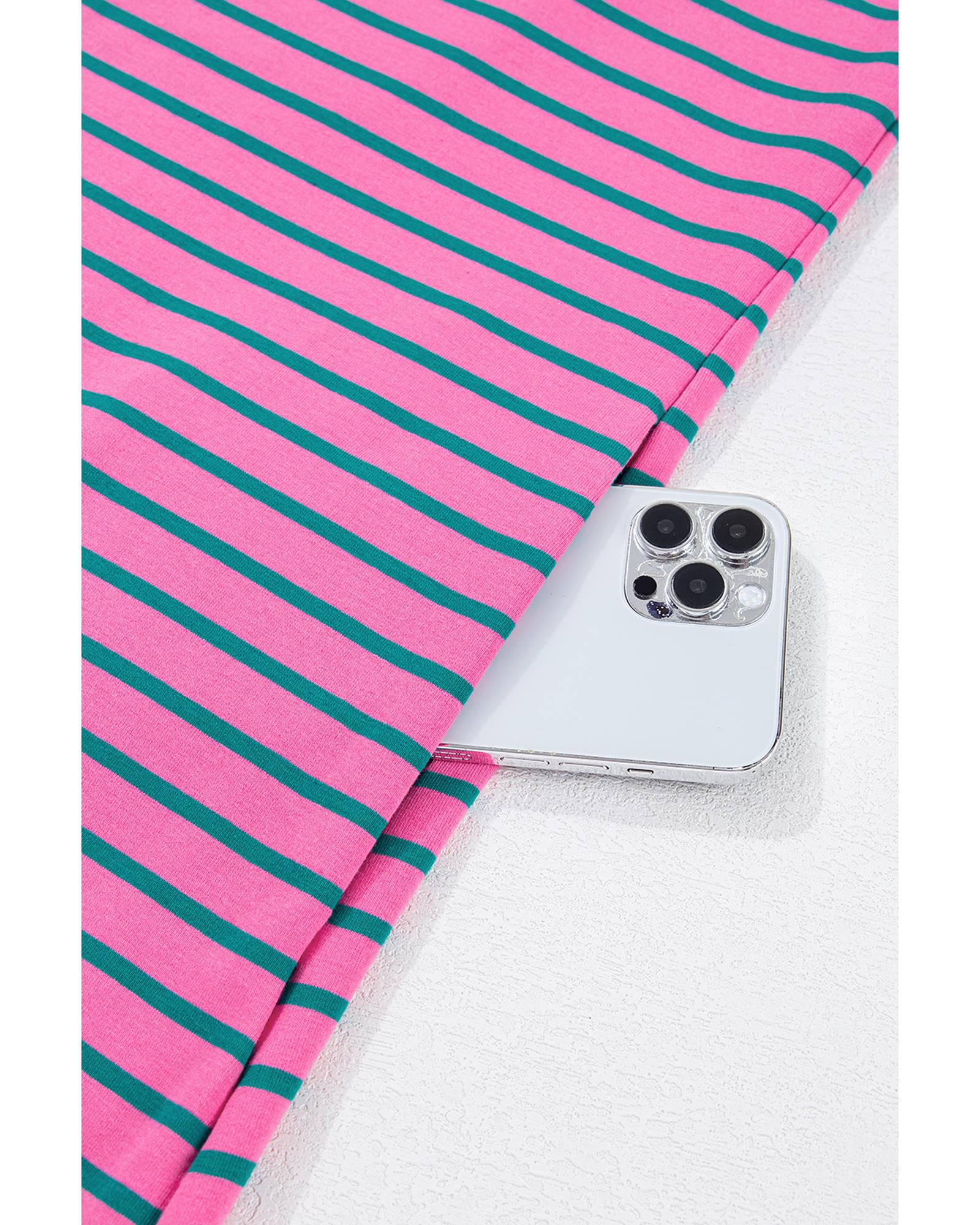Rose Stripe Collared V Neck Puff Sleeve Shift T Shirt Dress with Pockets – 4X