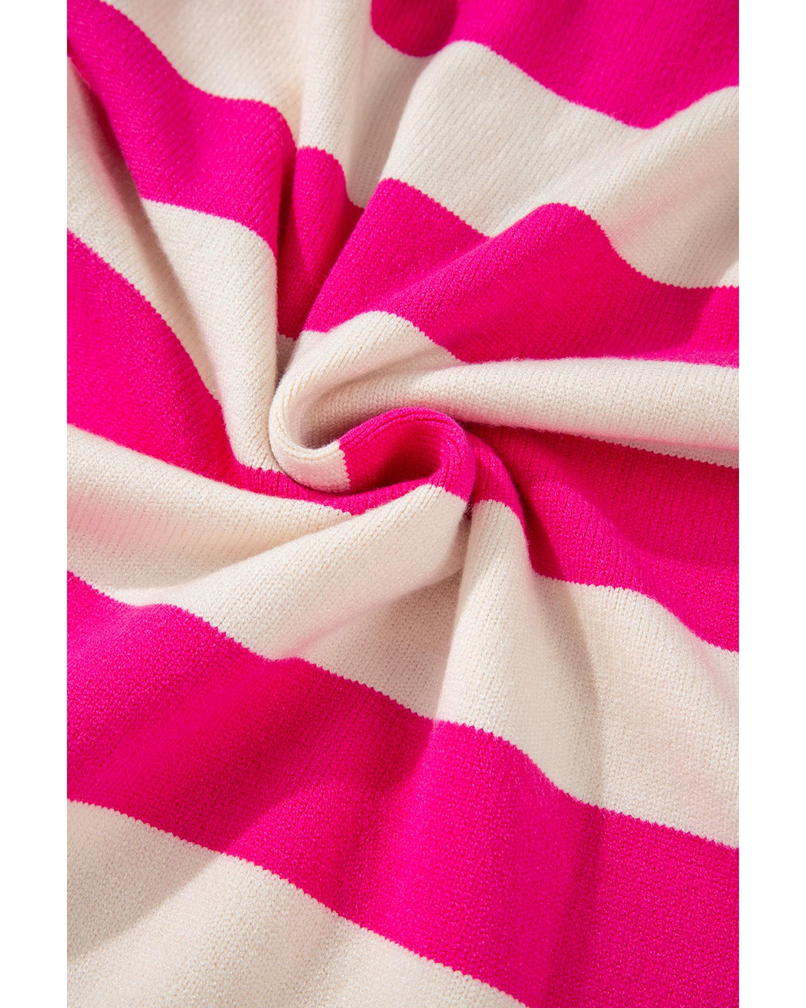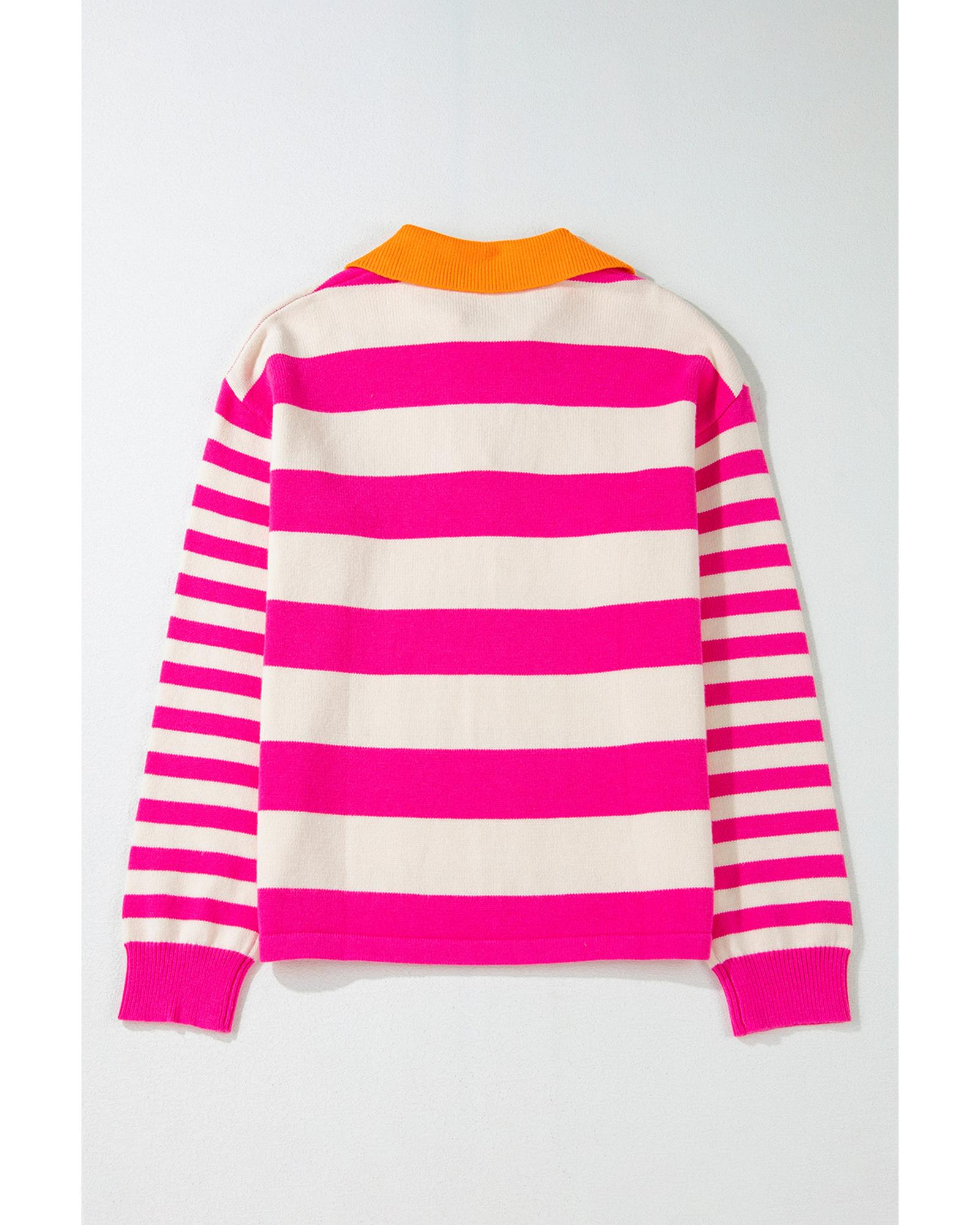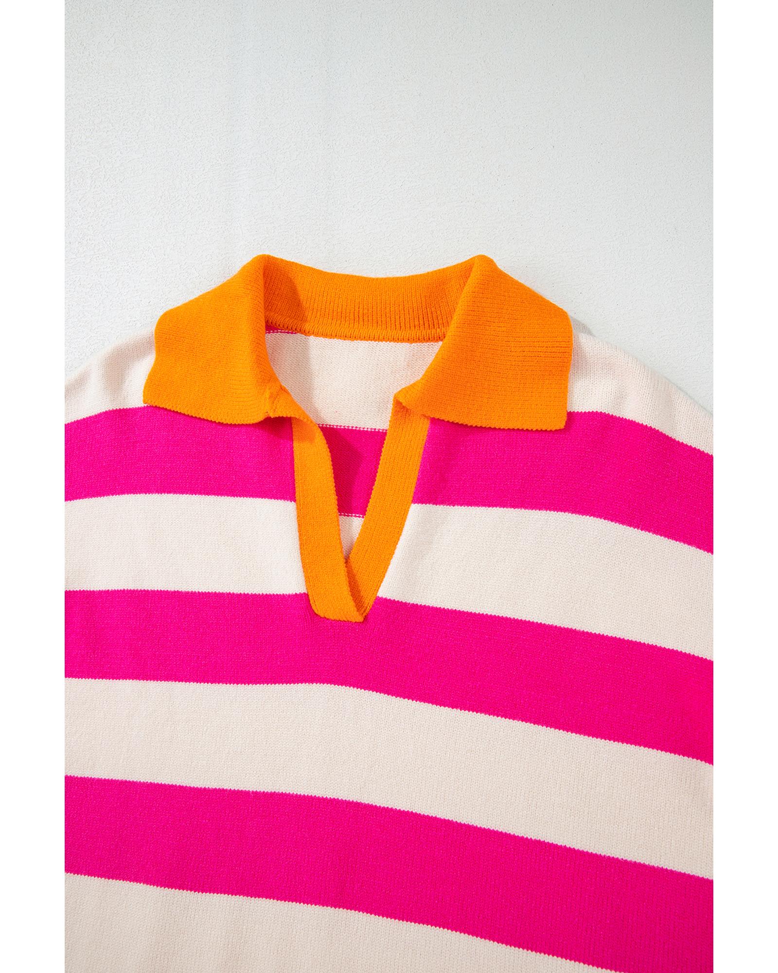Rose Stripe Color Block Collared V Neck Drop Shoulder Sweater – XL