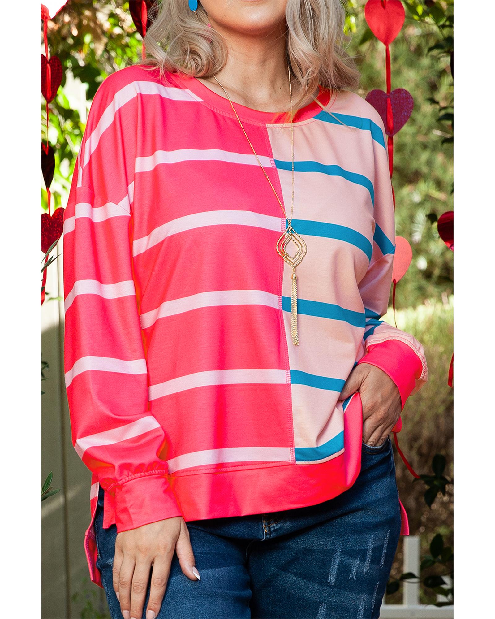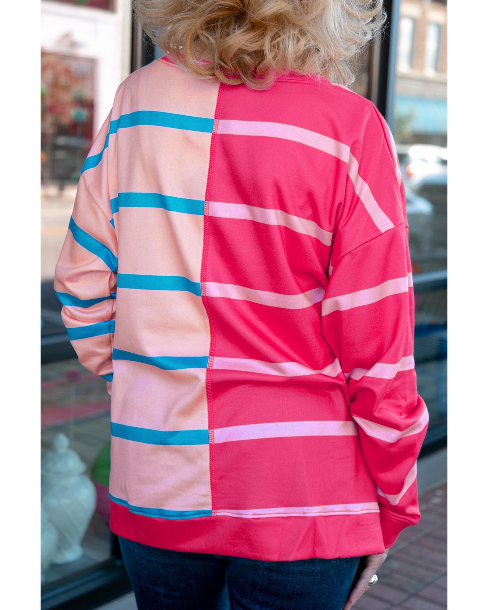 Rose Stripe Color Block Crewneck Long Sleeve Plus Size T Shirt – 1X