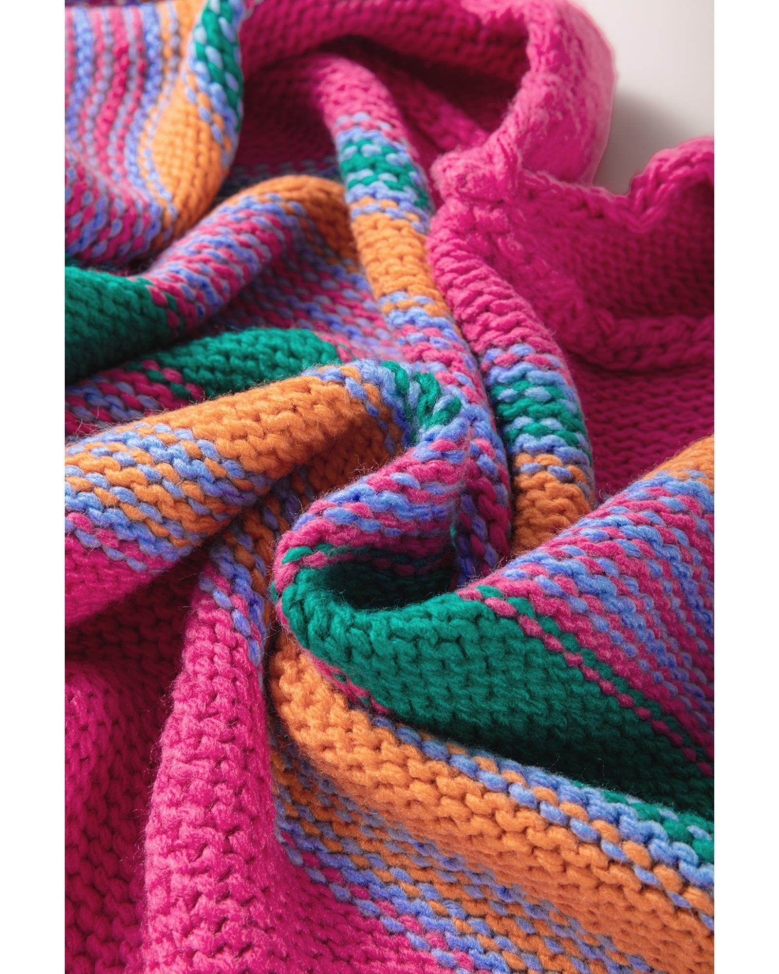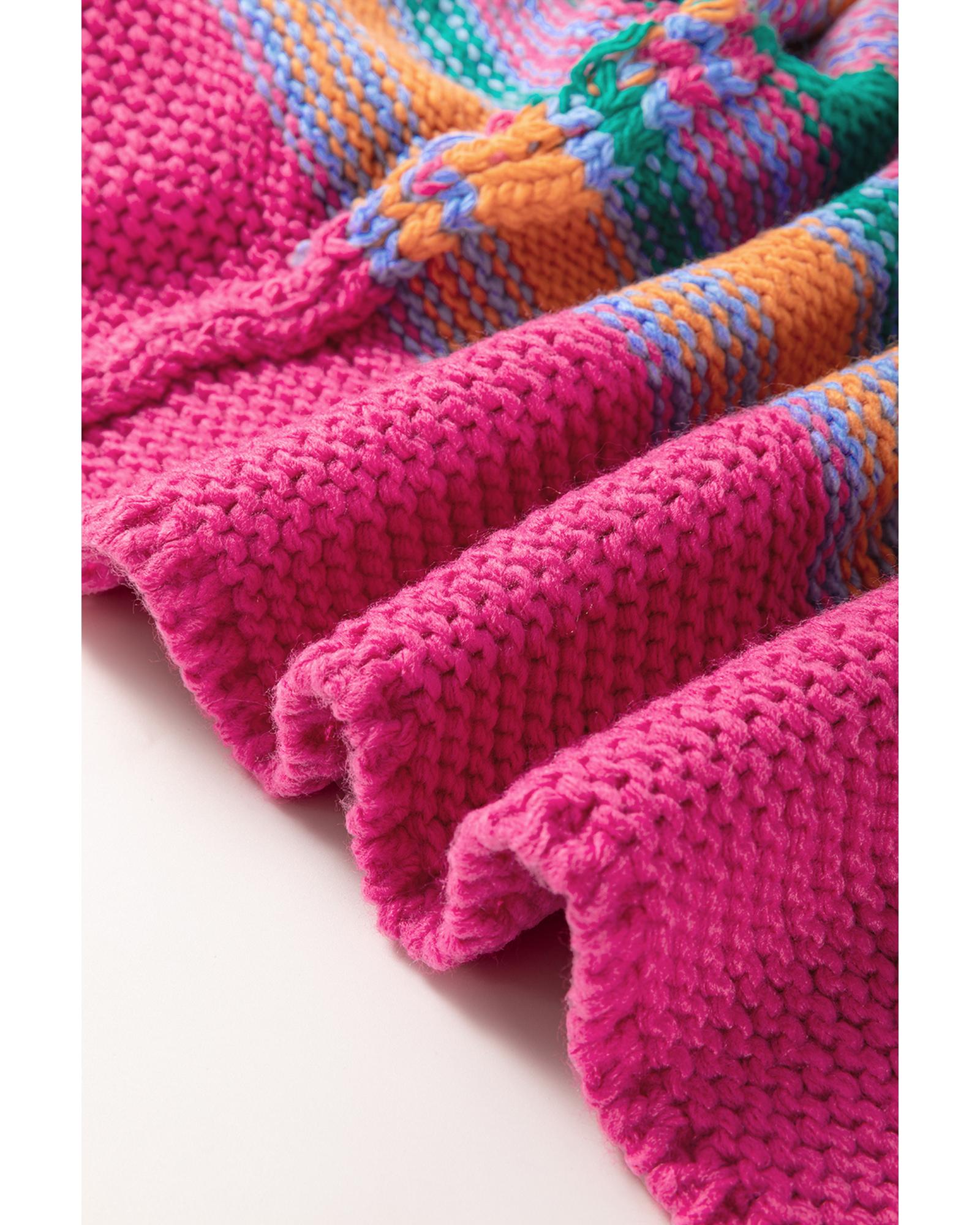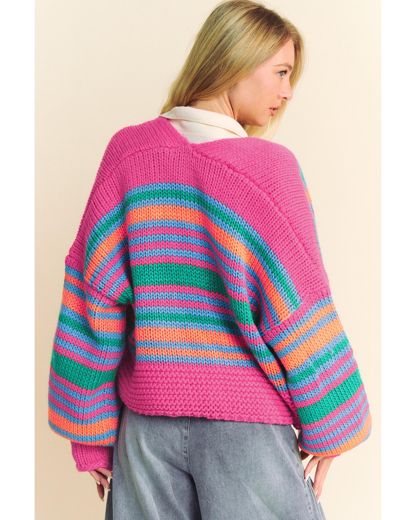 Rose Stripe Colorful Puff Sleeve Drop Shoulder Loose Cardigan – M