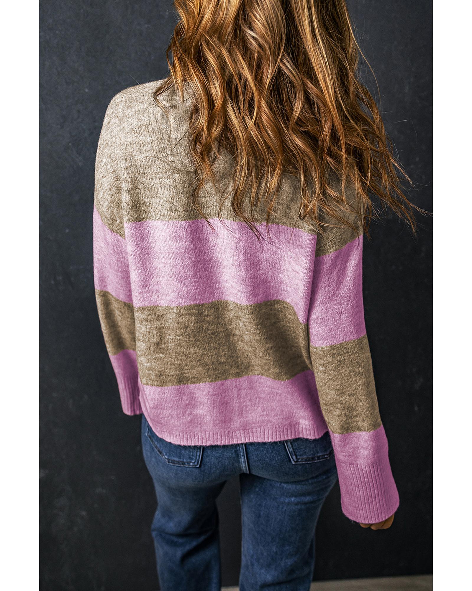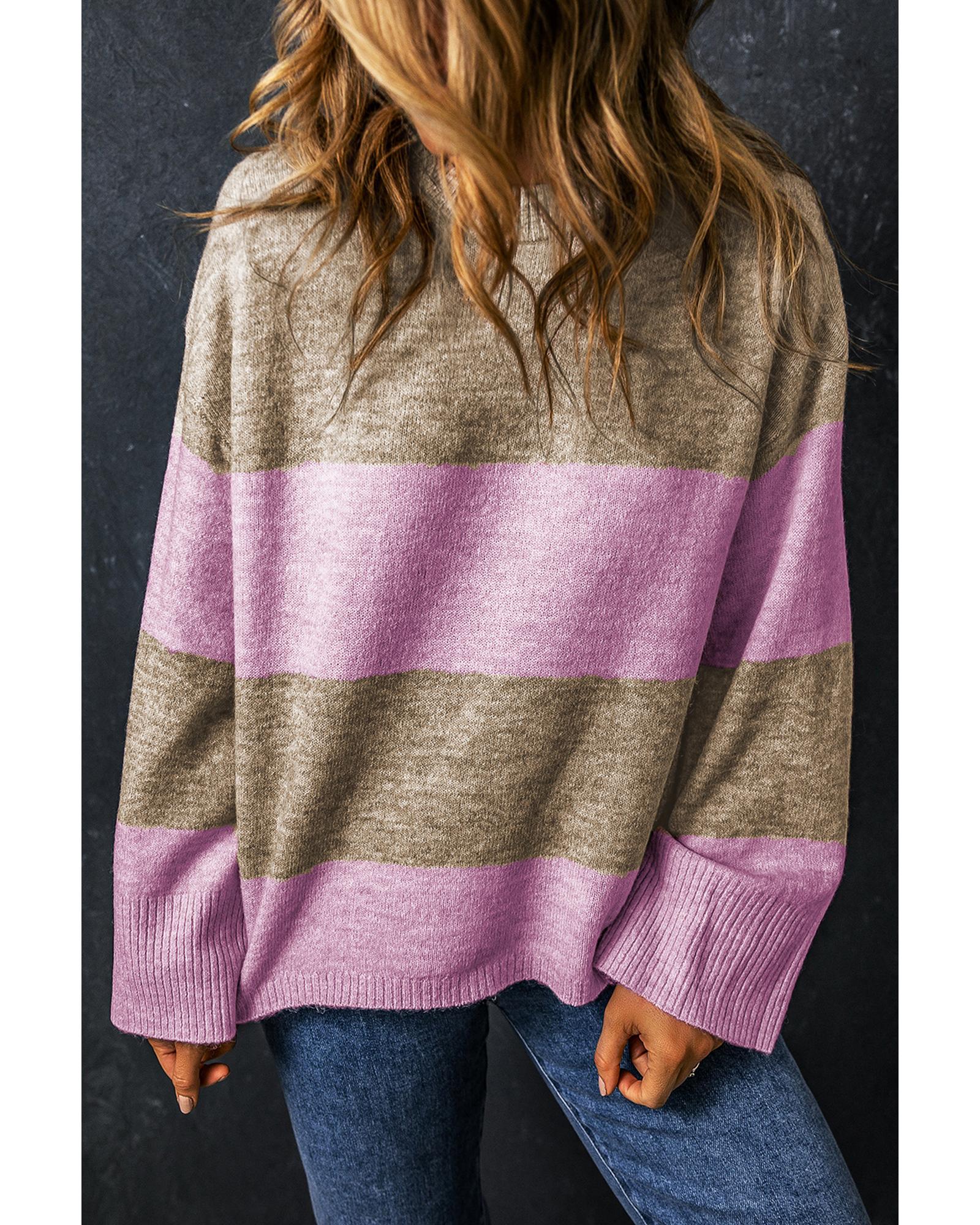 • Luxurious Rose Stripe Crew Neck Wide Sleeve Colorblock Sweater