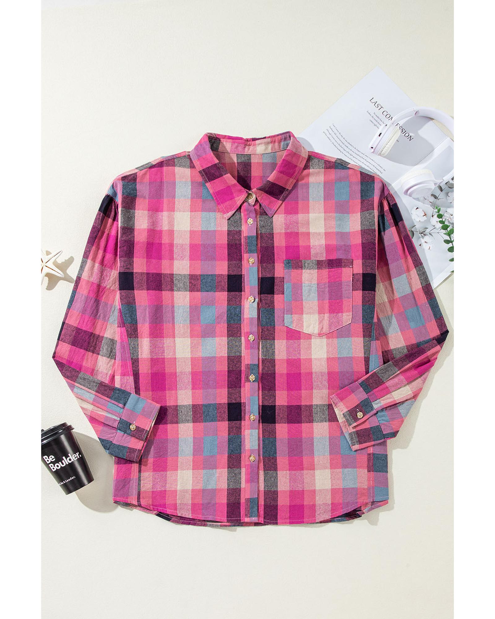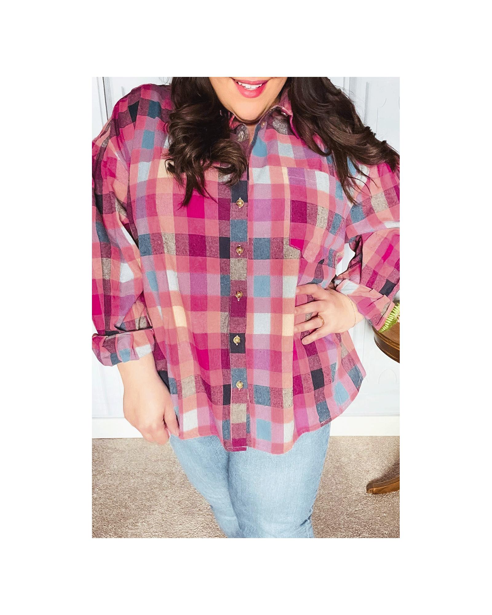 Rose Stripe Plus Size Checkered Print Button up Shirt – 2X
