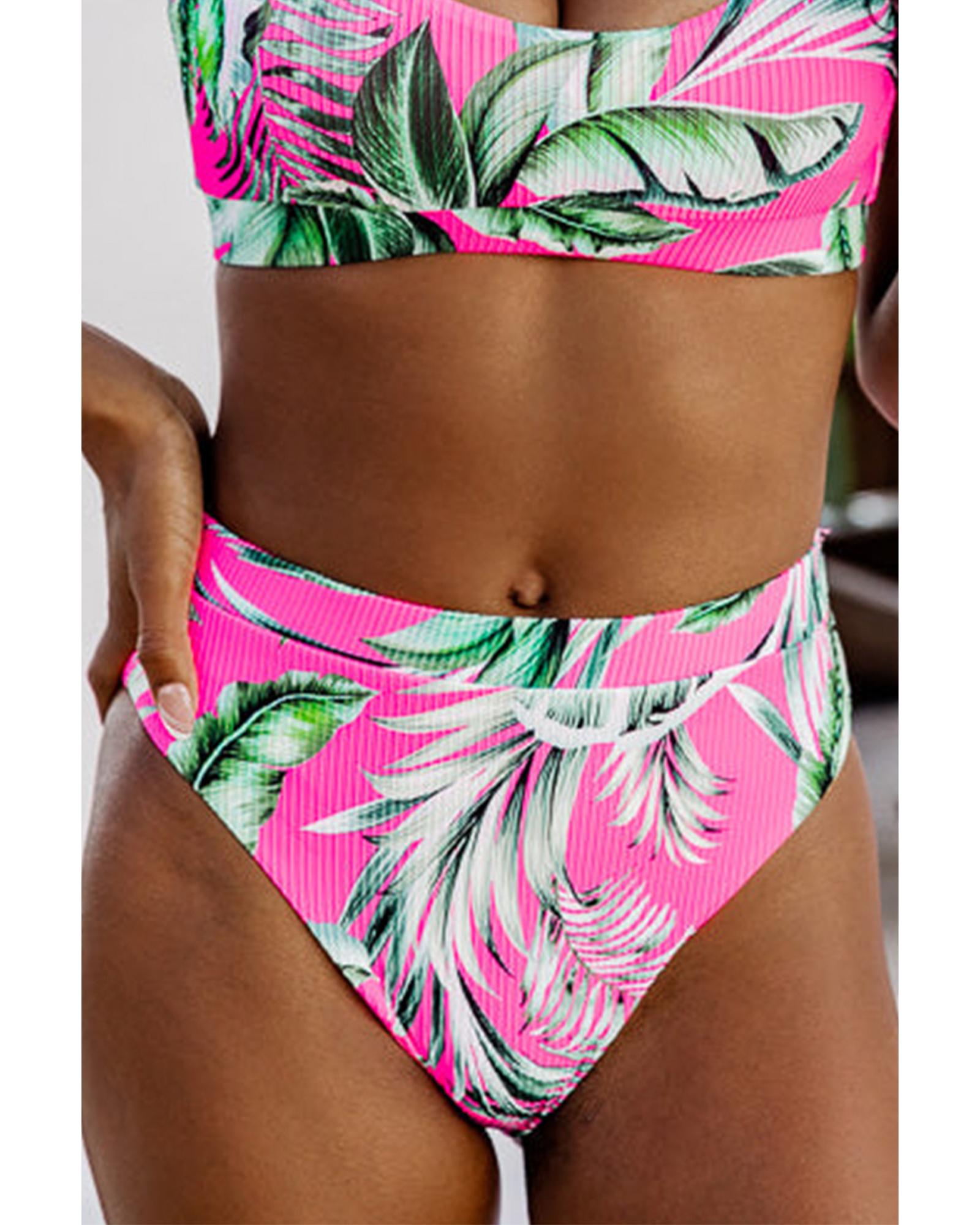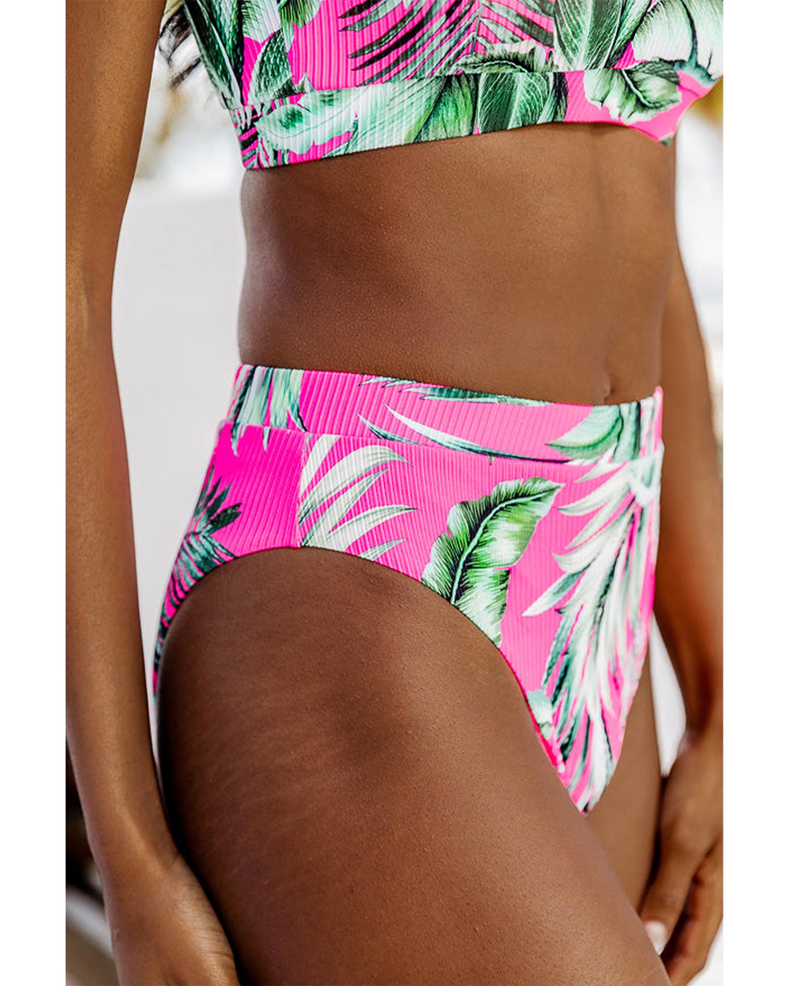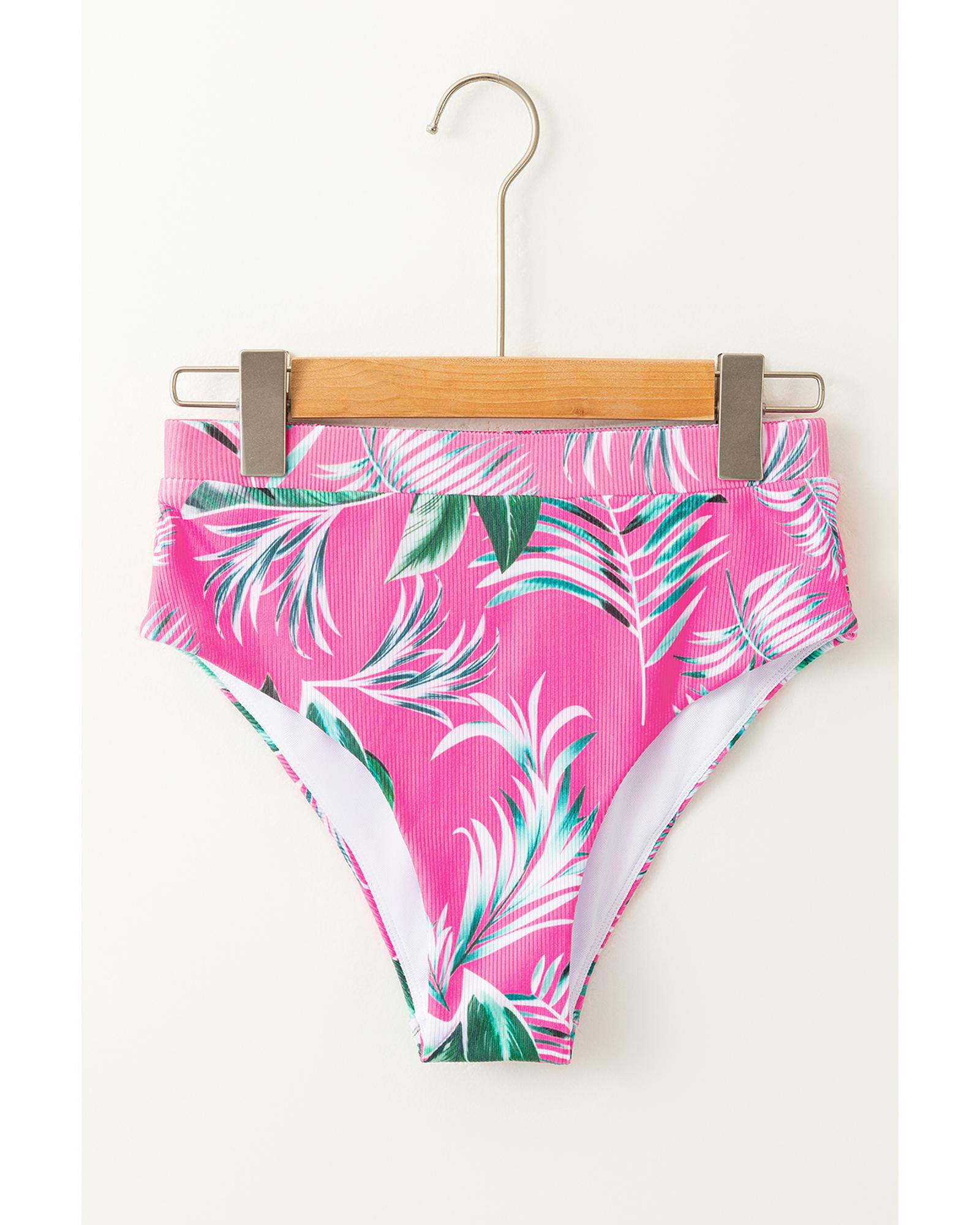 Rose Tropical Print Textured Bikini Bottoms – L