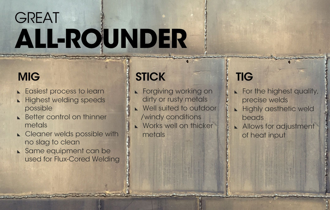 - Weldable Metals: Stainless Steel, Steel, Cast Iron