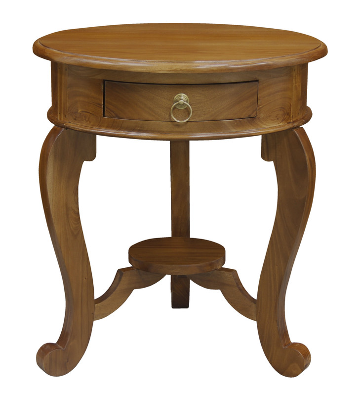 Round Cabriole Leg 1 Drawer Lamp Table (Light Pecan)