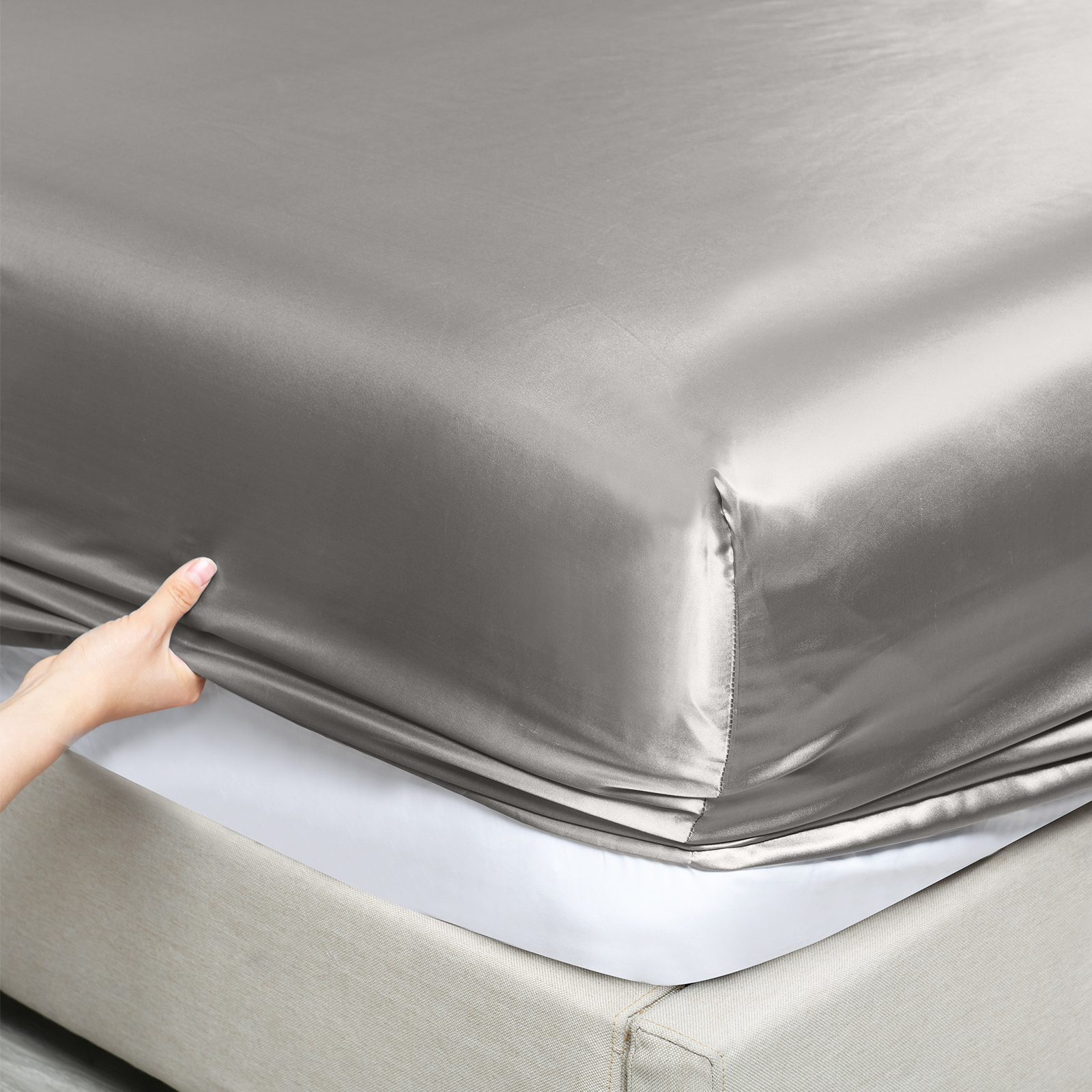 This sleek satin sheet set is designed for year-round use and makes a wonderful addition to your bedroom and brings a touch of sophistication to any space.