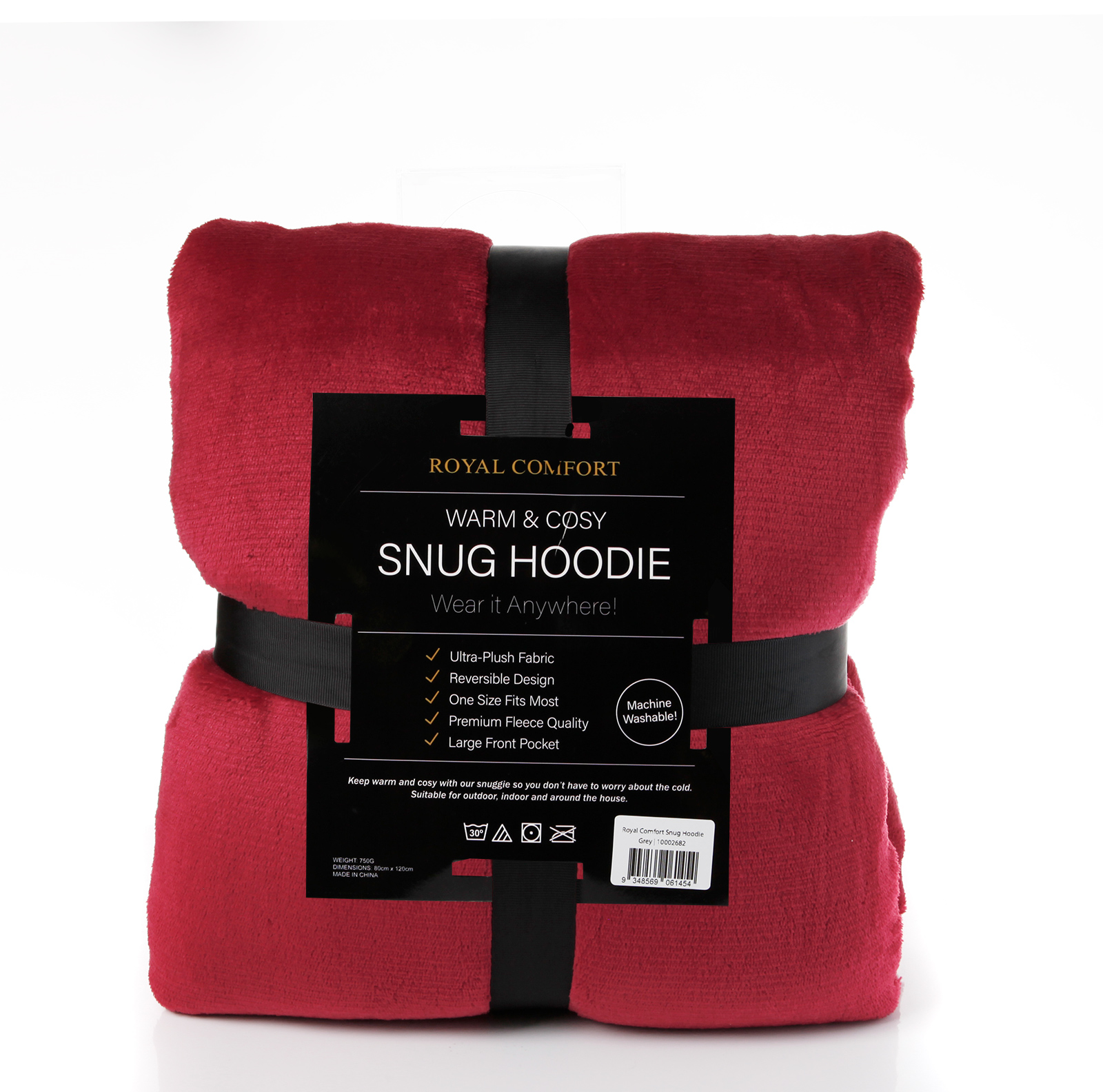 Royal Comfort Snug Hoodie Nightwear Super Soft Reversible Coral Fleece 750GSM – Red