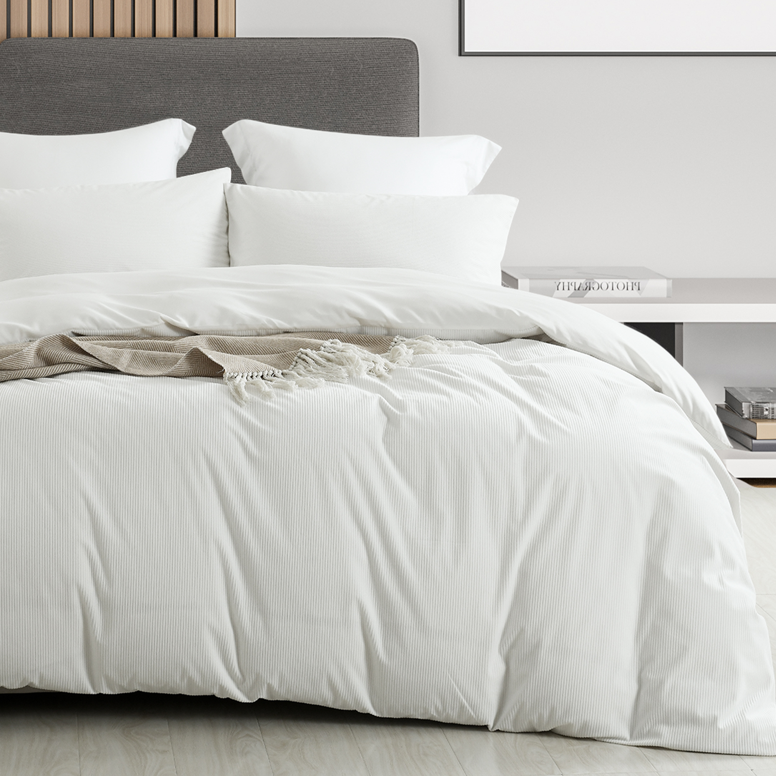 Featuring a gorgeously textured velvet corduroy this is the ultimate cosy quilt cover. Adding plenty of luxe texture and warmth.