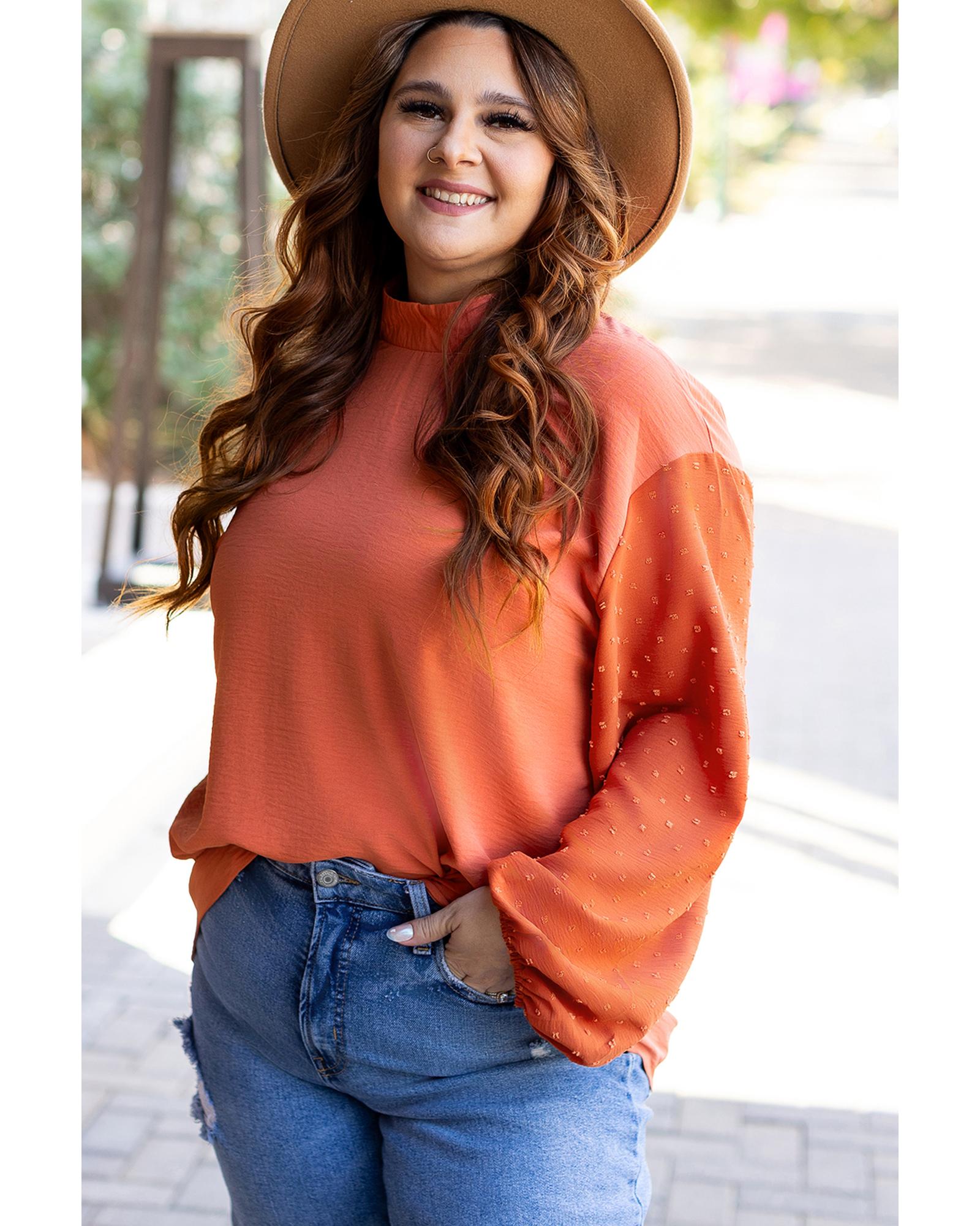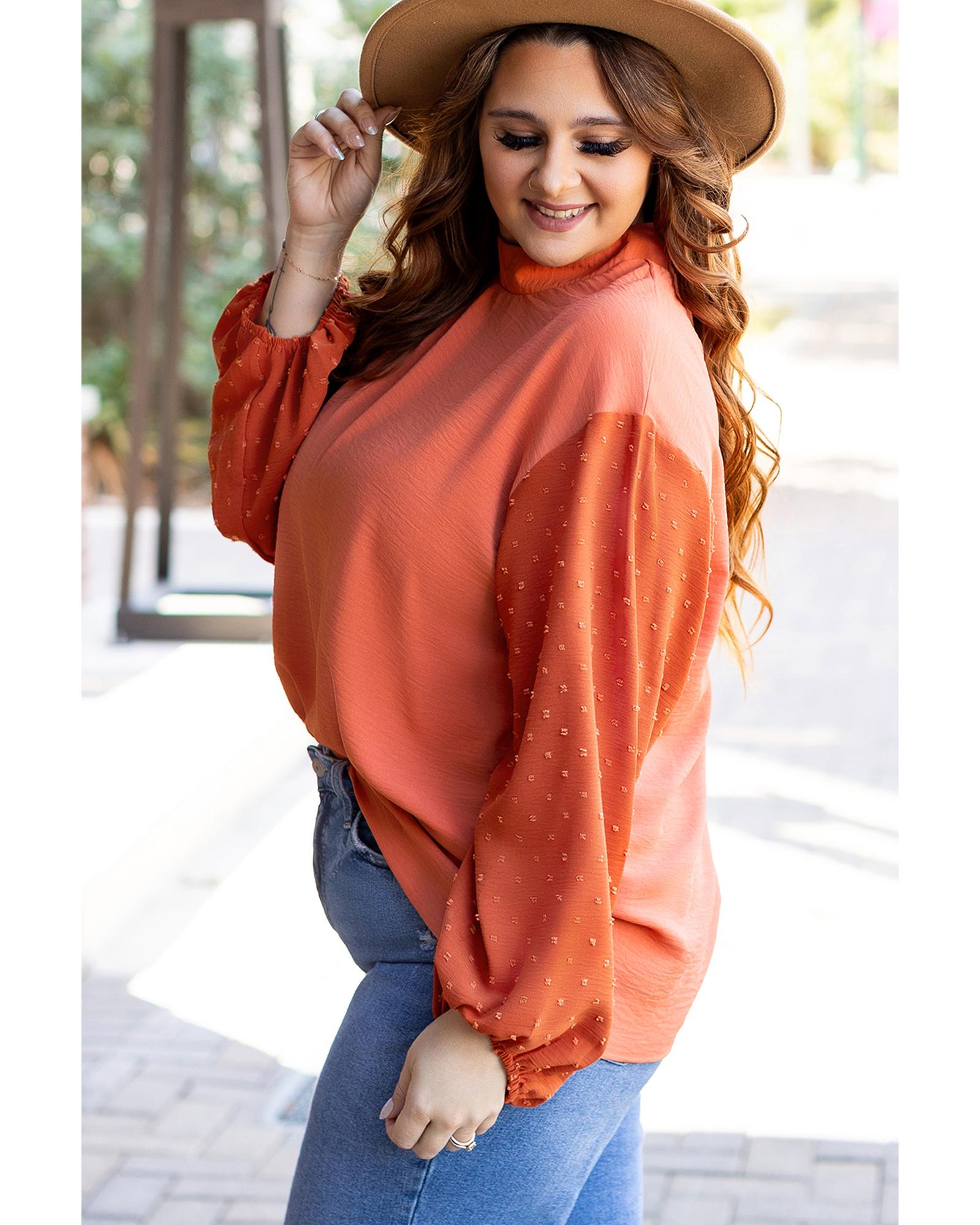 Russet Orange Swiss Dot Balloon Sleeve Loose Blouse – XL