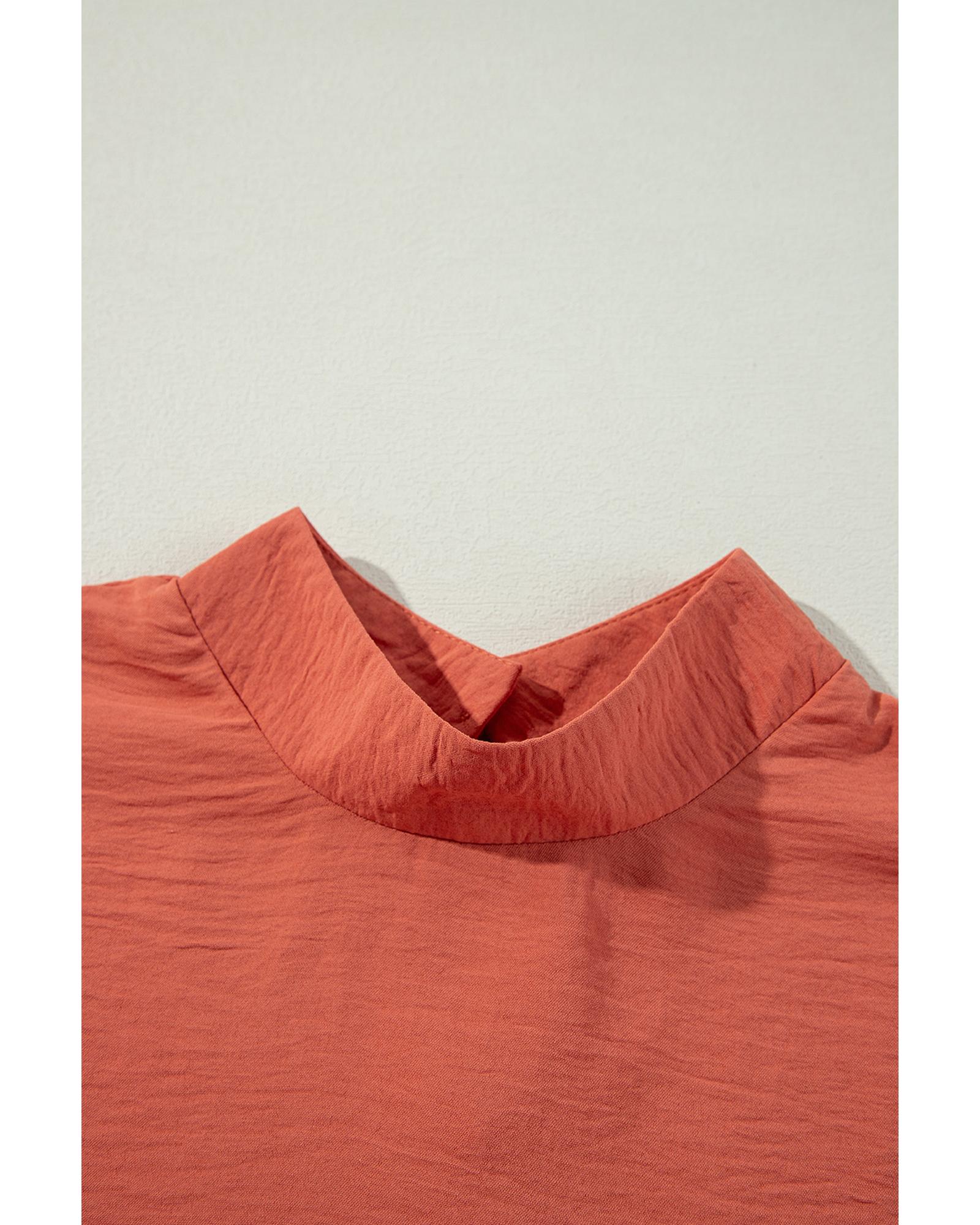 - Russet Orange Swiss Dot Balloon Sleeve Loose Blouse