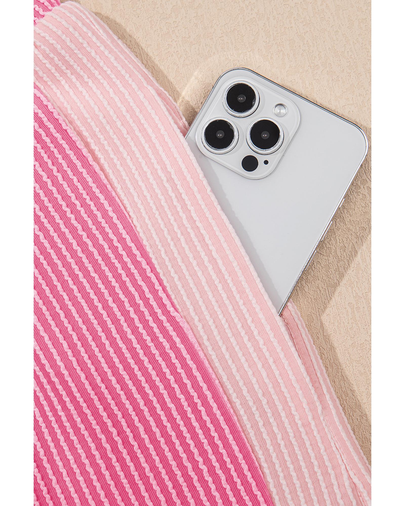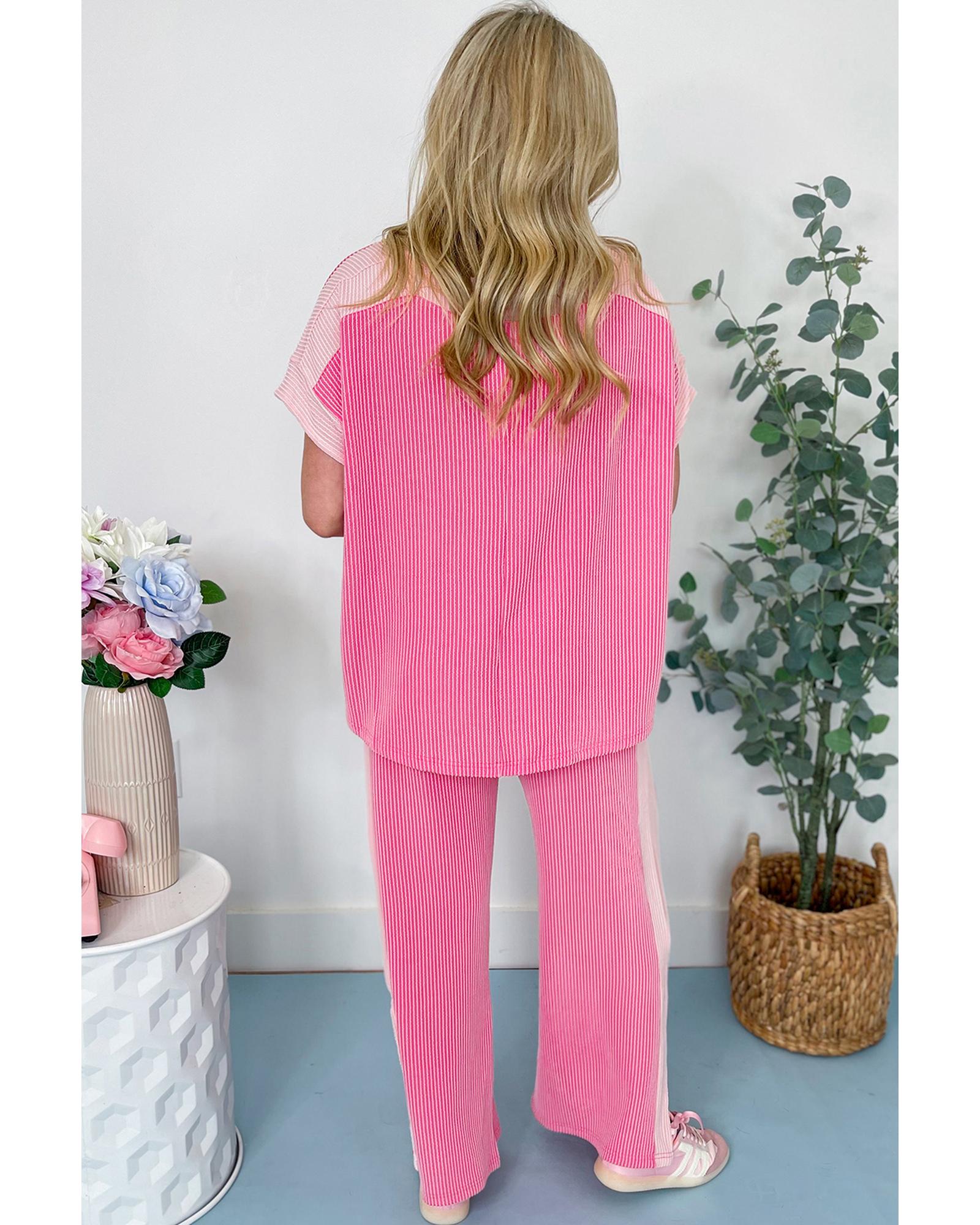 Sachet Pink 2-tone Colorblock Patchwork Corded 2pcs Outfit – M