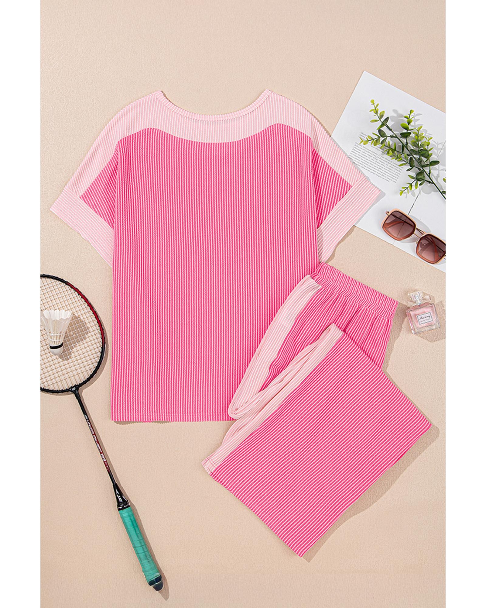 Sachet Pink 2-tone Colorblock Patchwork Corded 2pcs Outfit – S