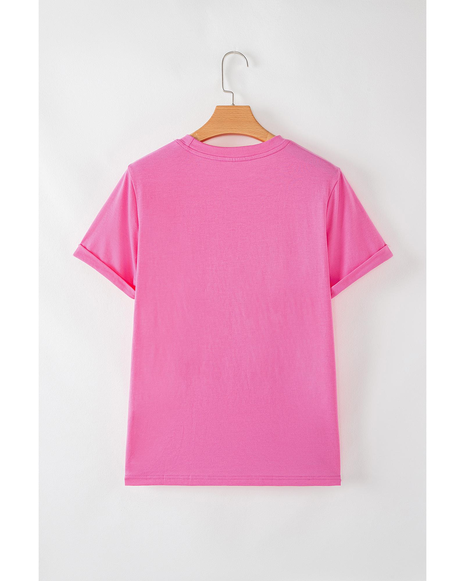 Sachet Pink Bright Casual Plain Crew Neck Tee – S