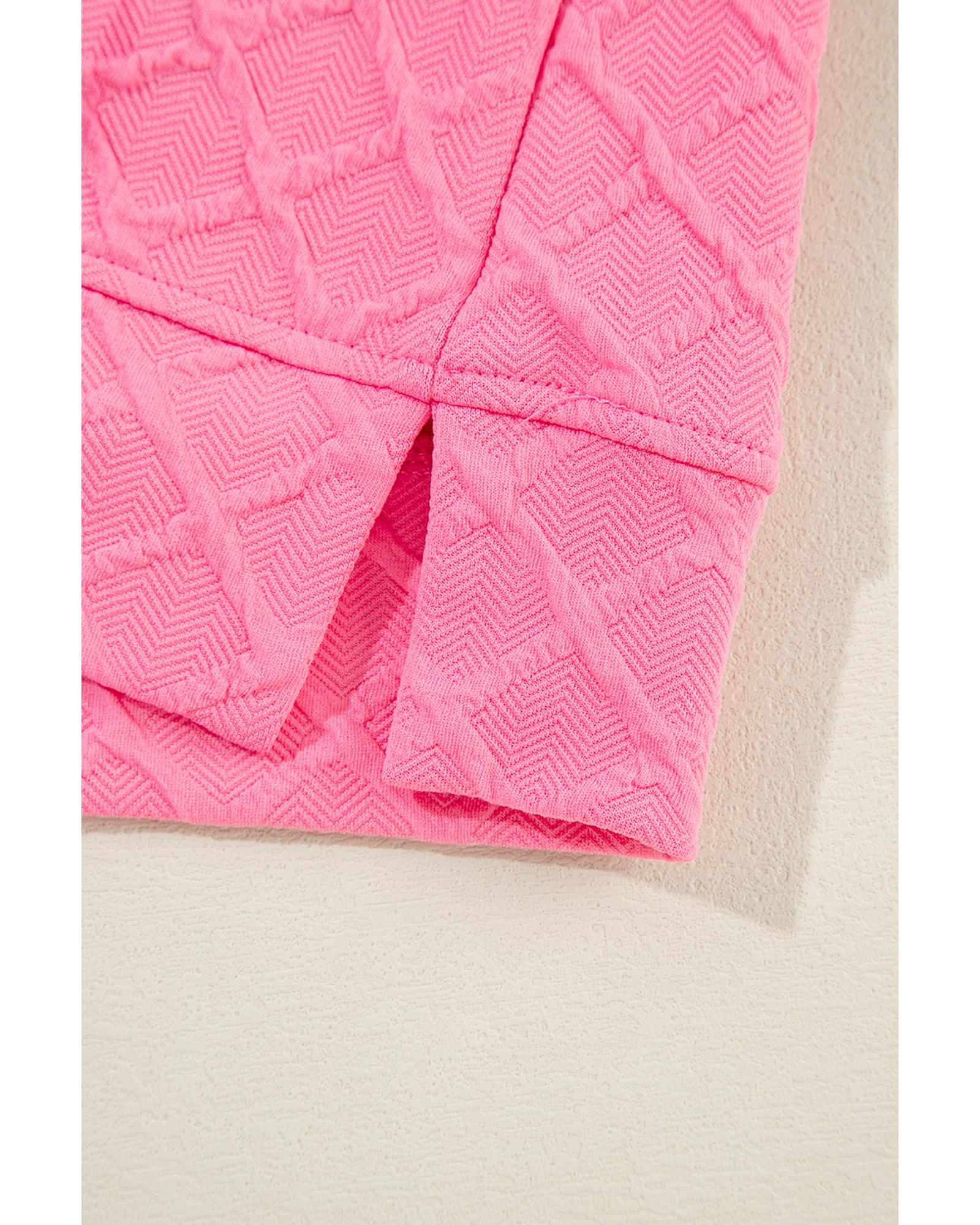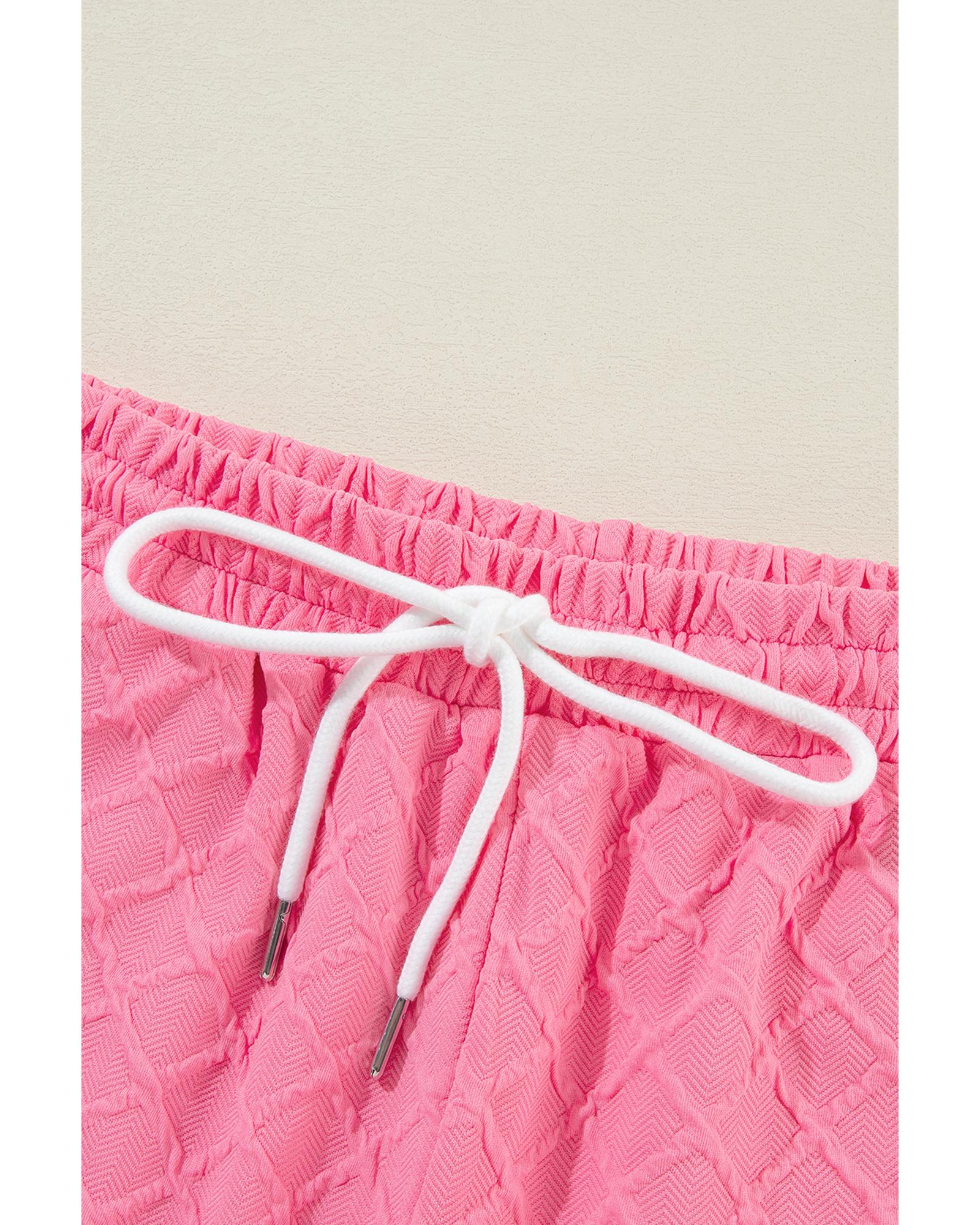 Sachet Pink Checkered Textured Tee and Drawstring Shorts – M