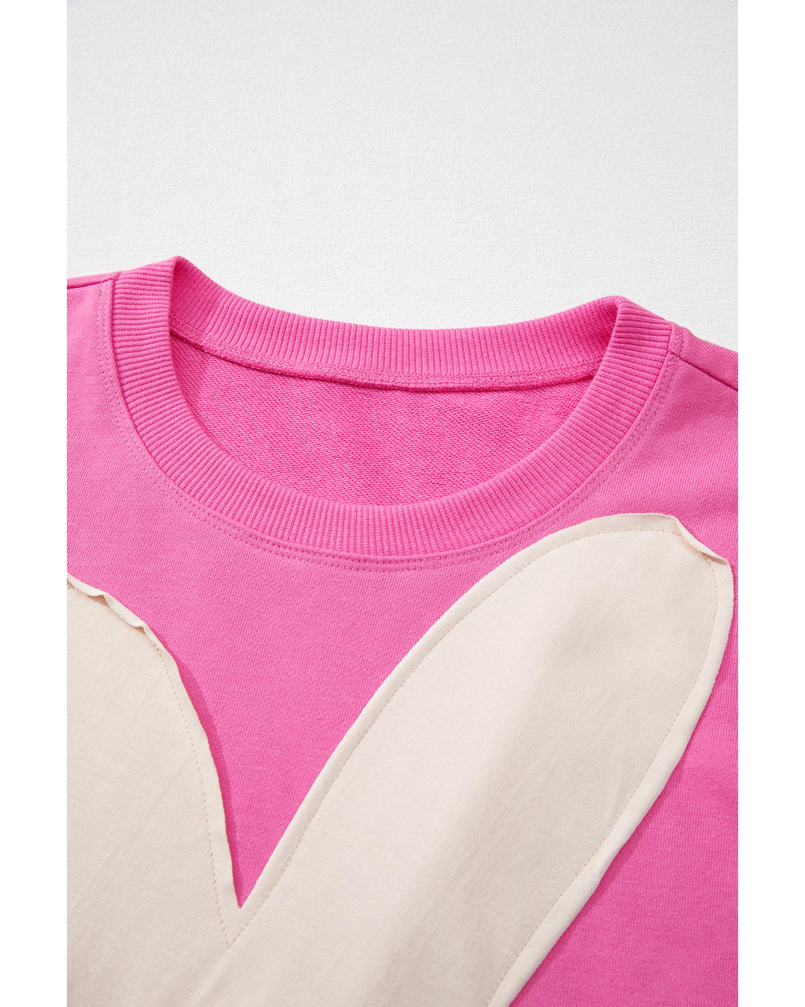 - Sachet Pink Contrast Flower Drop Shoulder Loose T