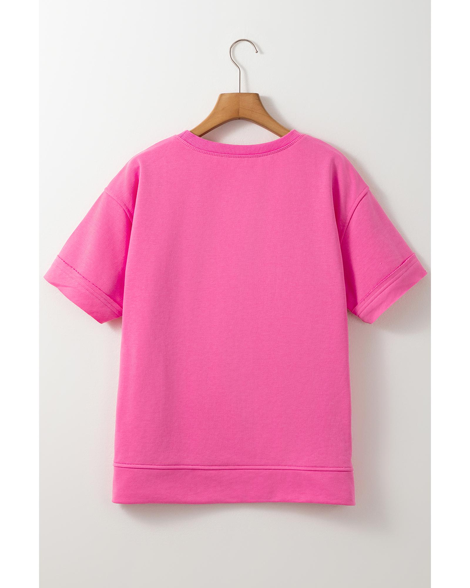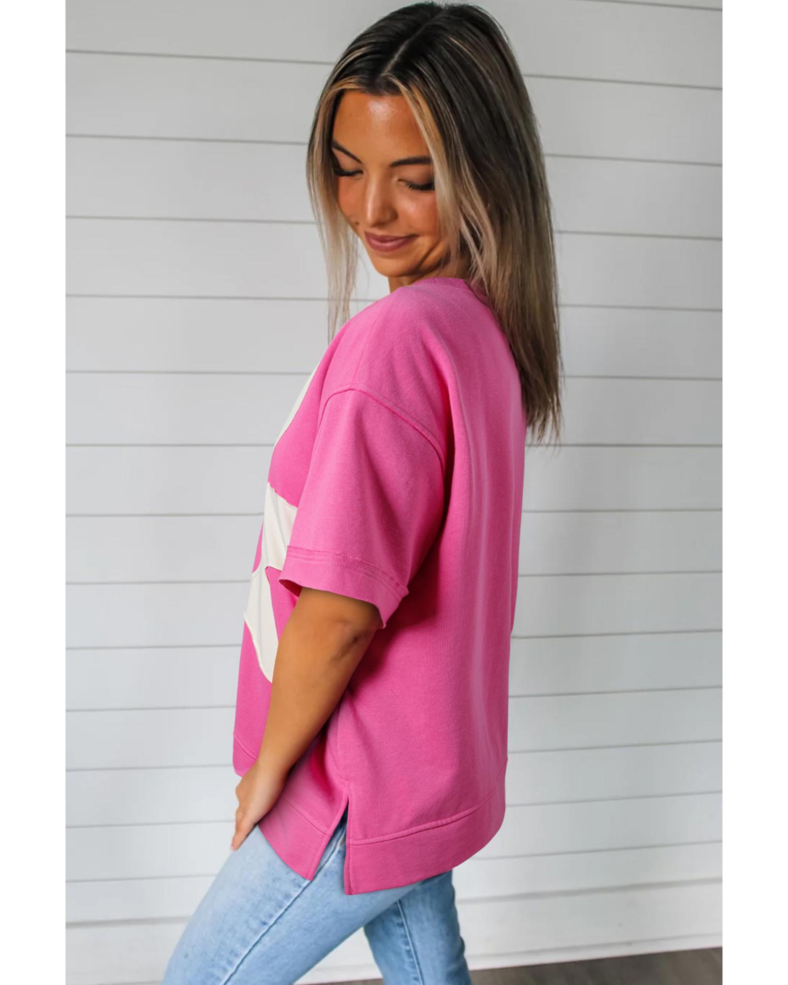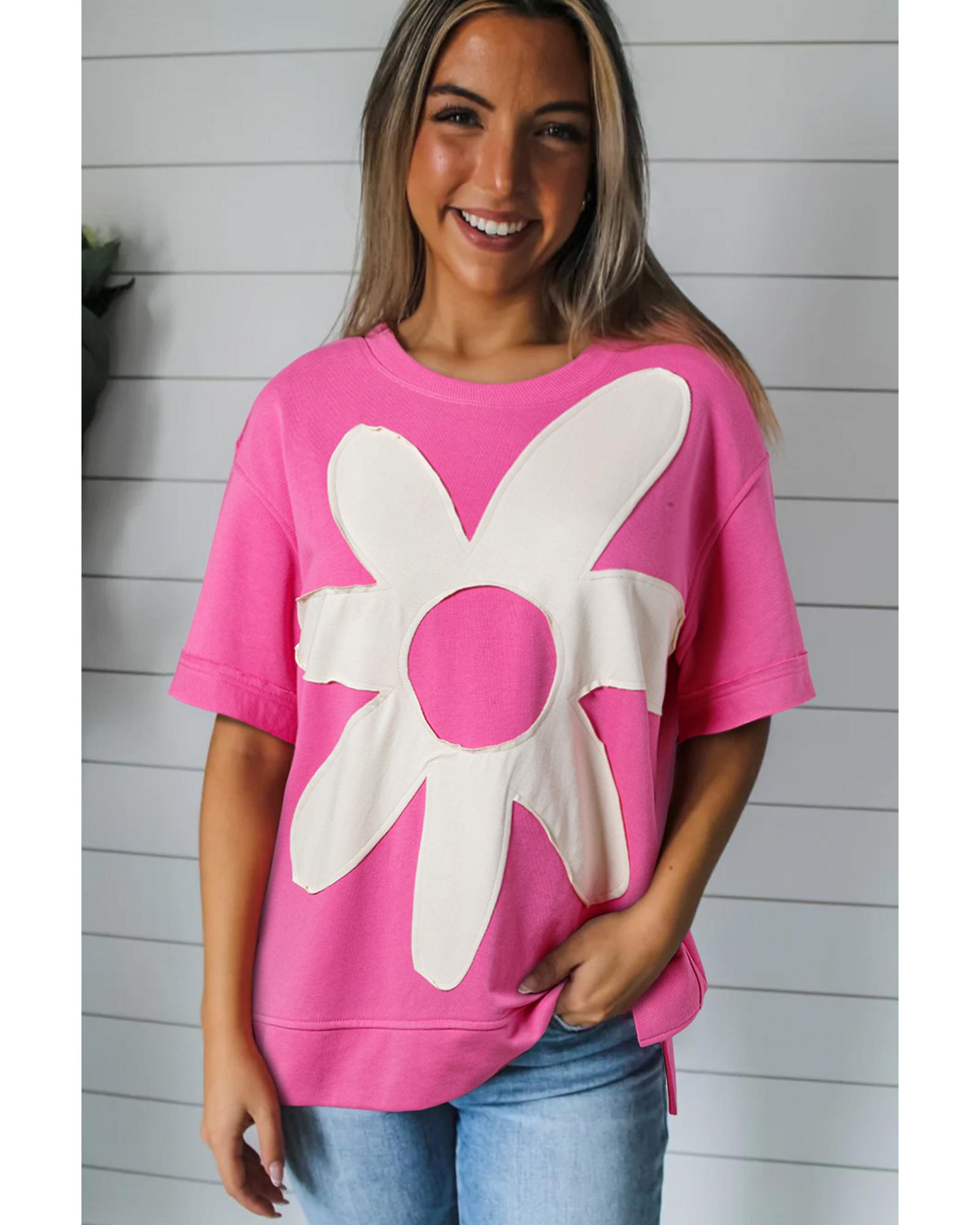 - Sachet Pink Contrast Flower Drop Shoulder Loose T