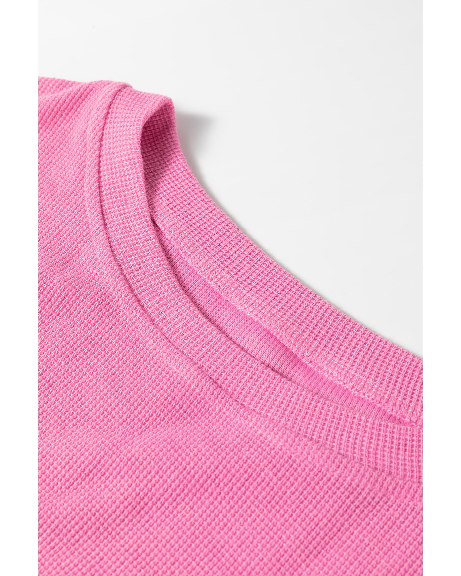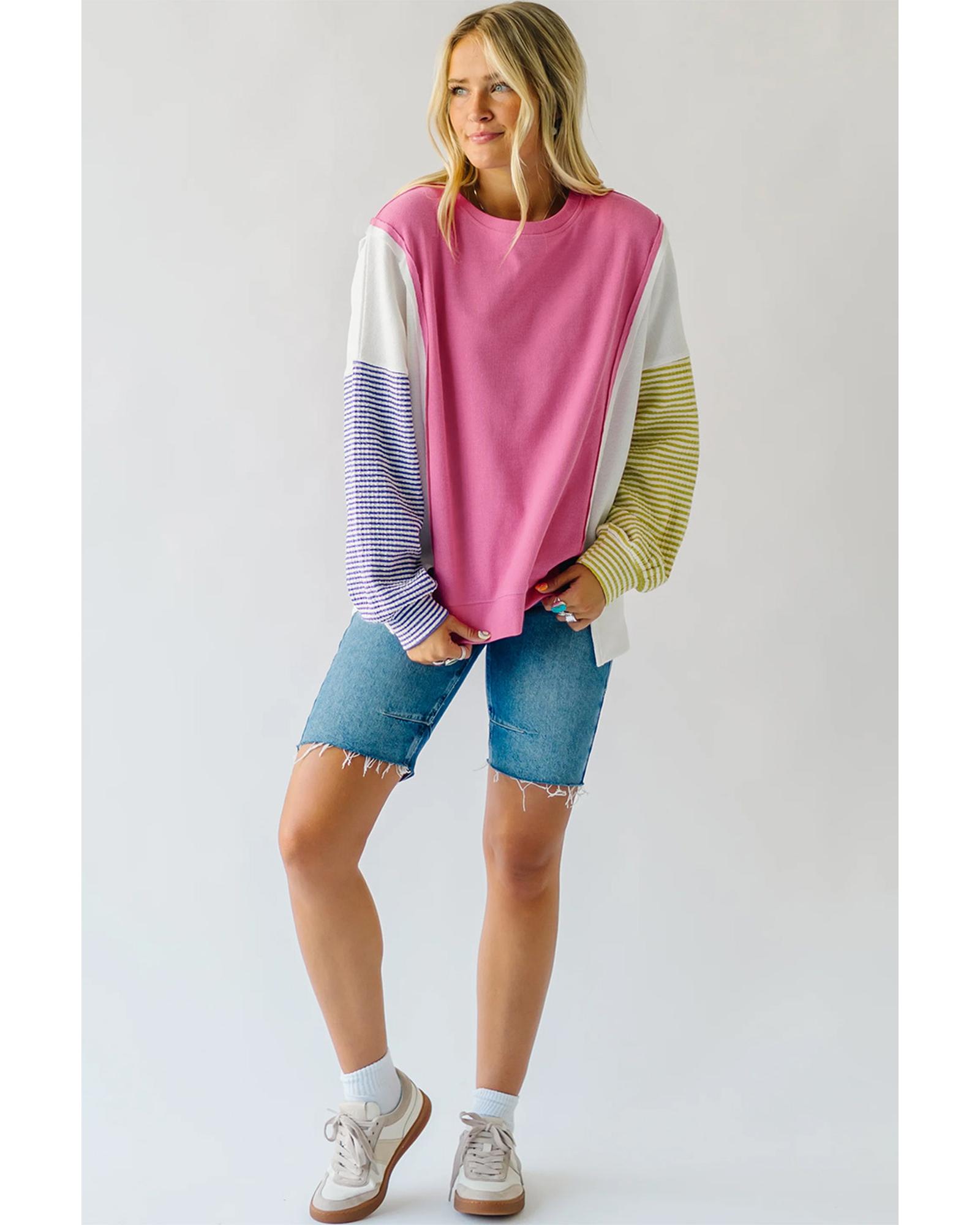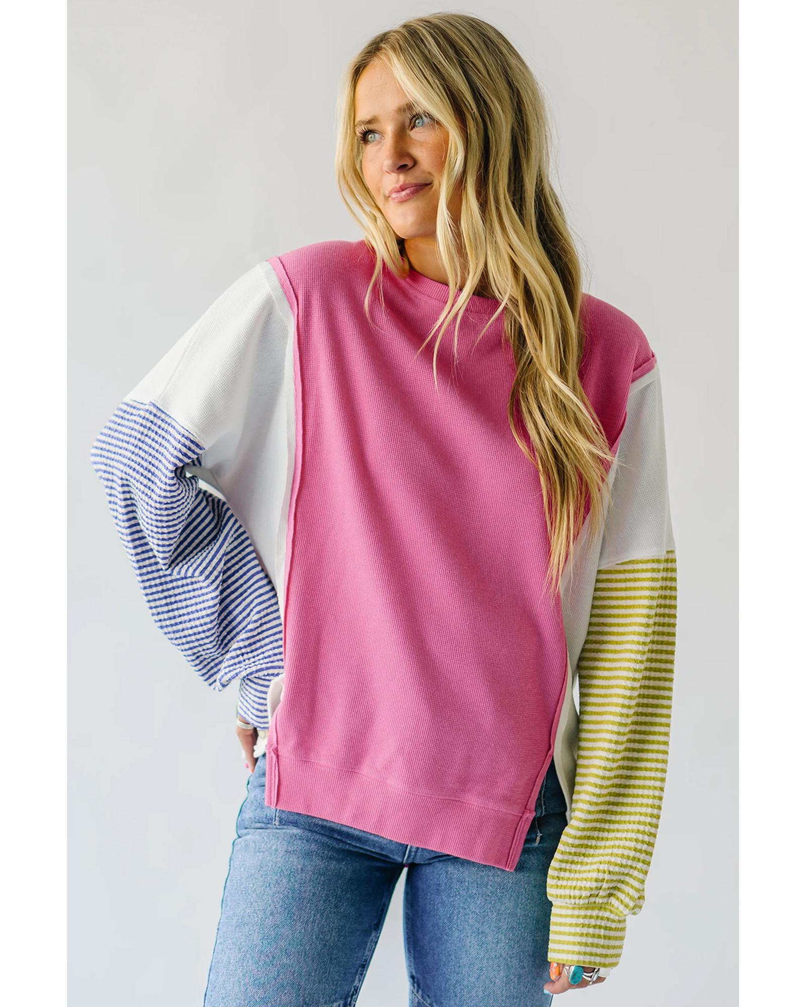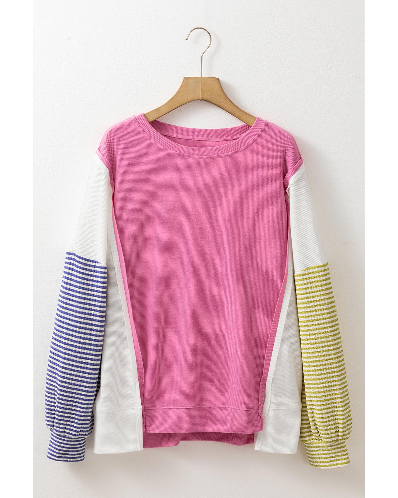 - Sachet Pink Exposed Seam Striped Color Block Patchwork Long Sleeve Top