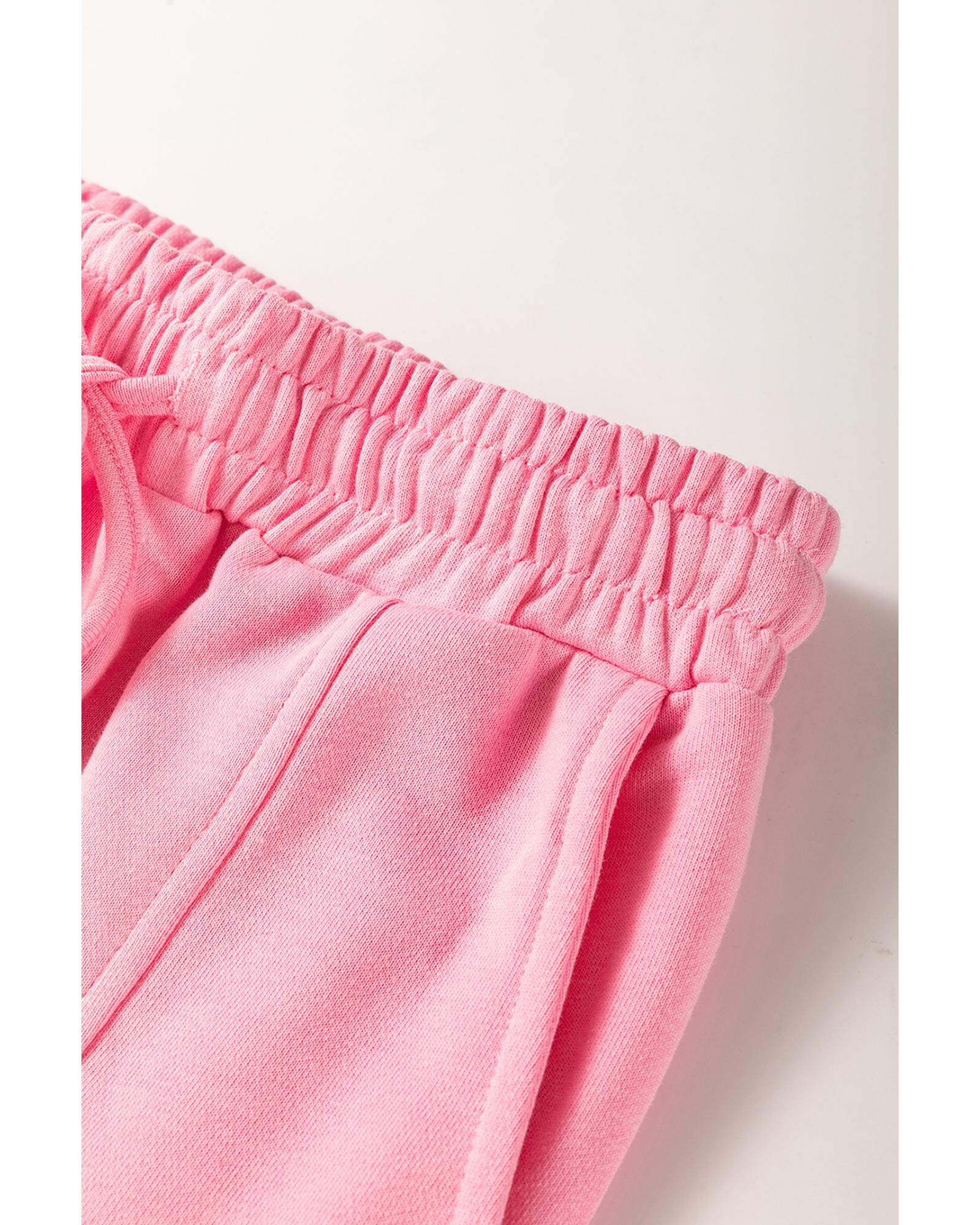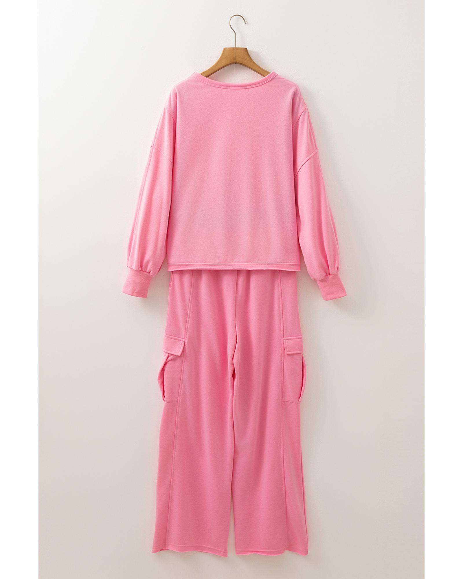 Sachet Pink Solid Color Patchwork Pullover Top and Cargo Pants Set – XL