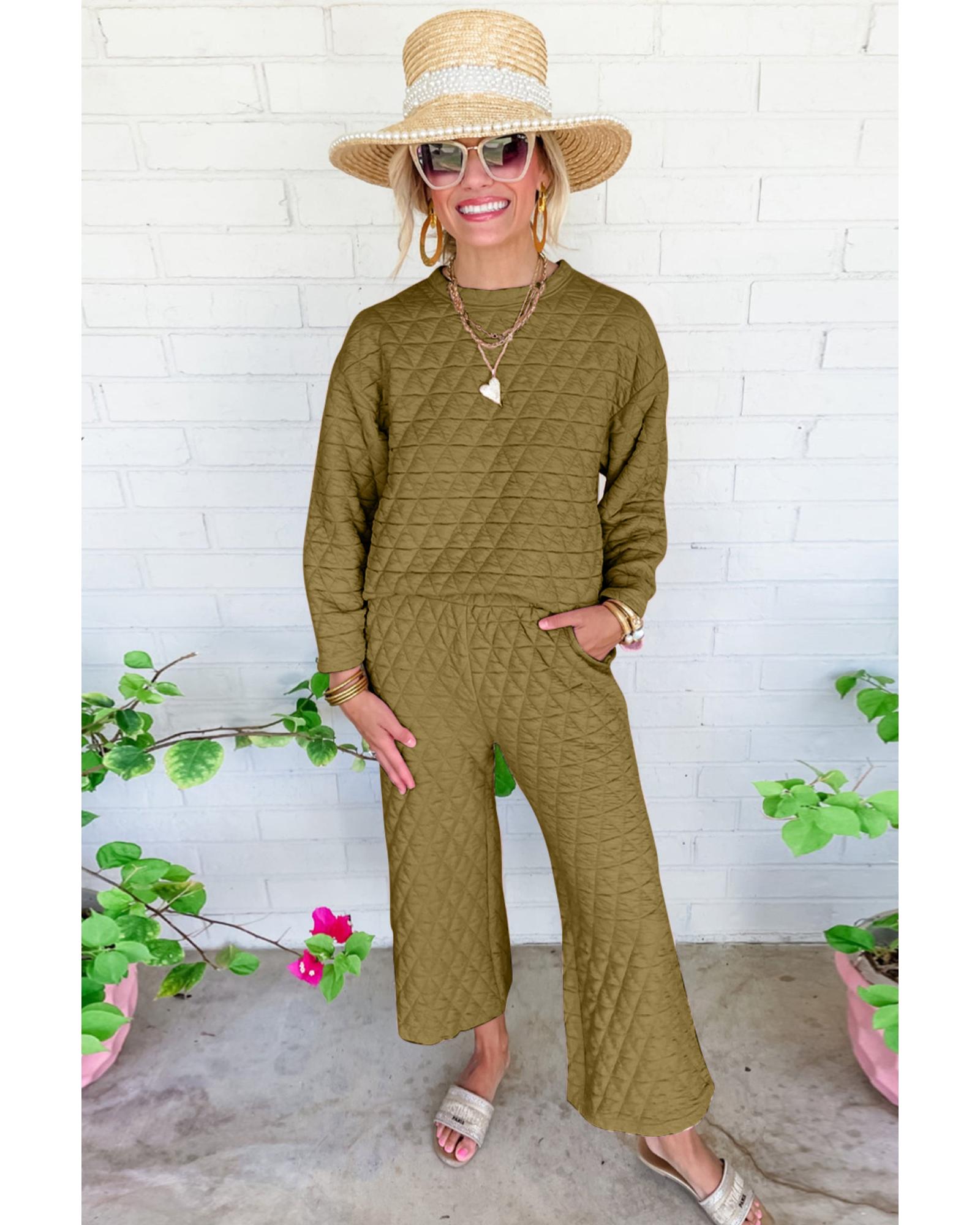 Sage Green Solid Quilted Pullover and Pants Outfit – M