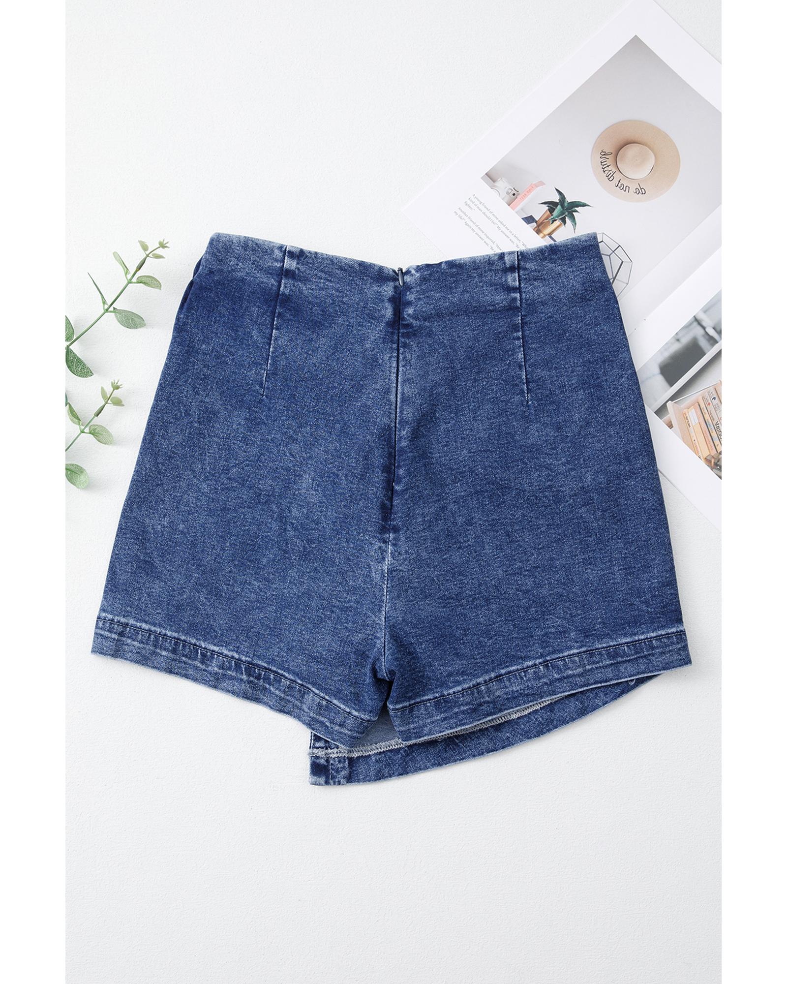 Sail Blue Acid Wash Asymmetric Twisted Wrapped Zipped Denim Skort - 12 US