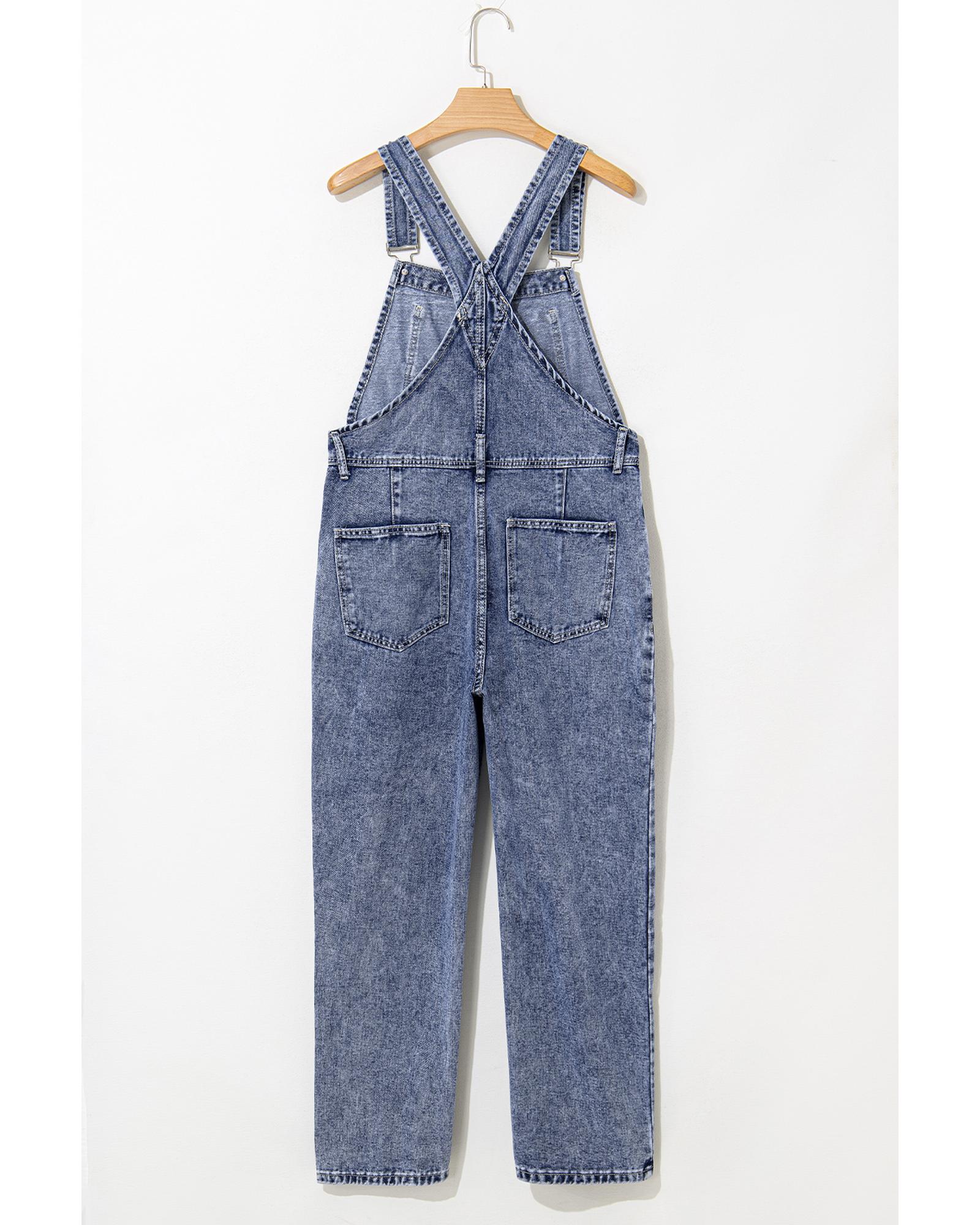 Sail Blue Denim Bib Straight Leg Jumpsuit with Pockets – S