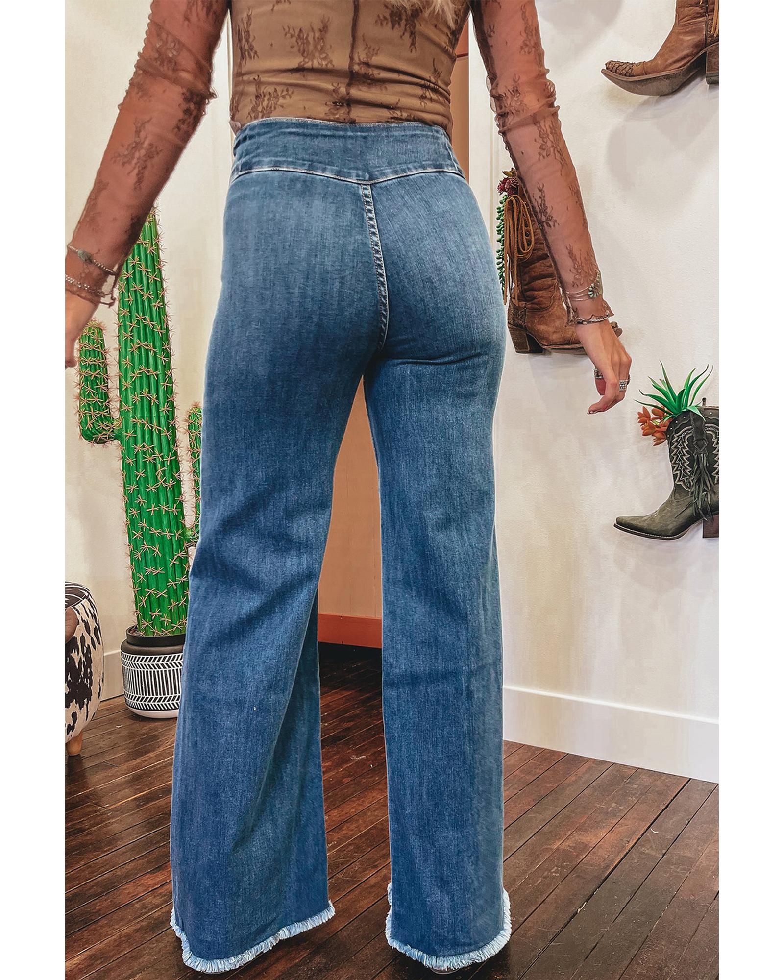 Sail Blue High Waist Button Fly Seamed Raw Hem Flare Jeans – 8 US