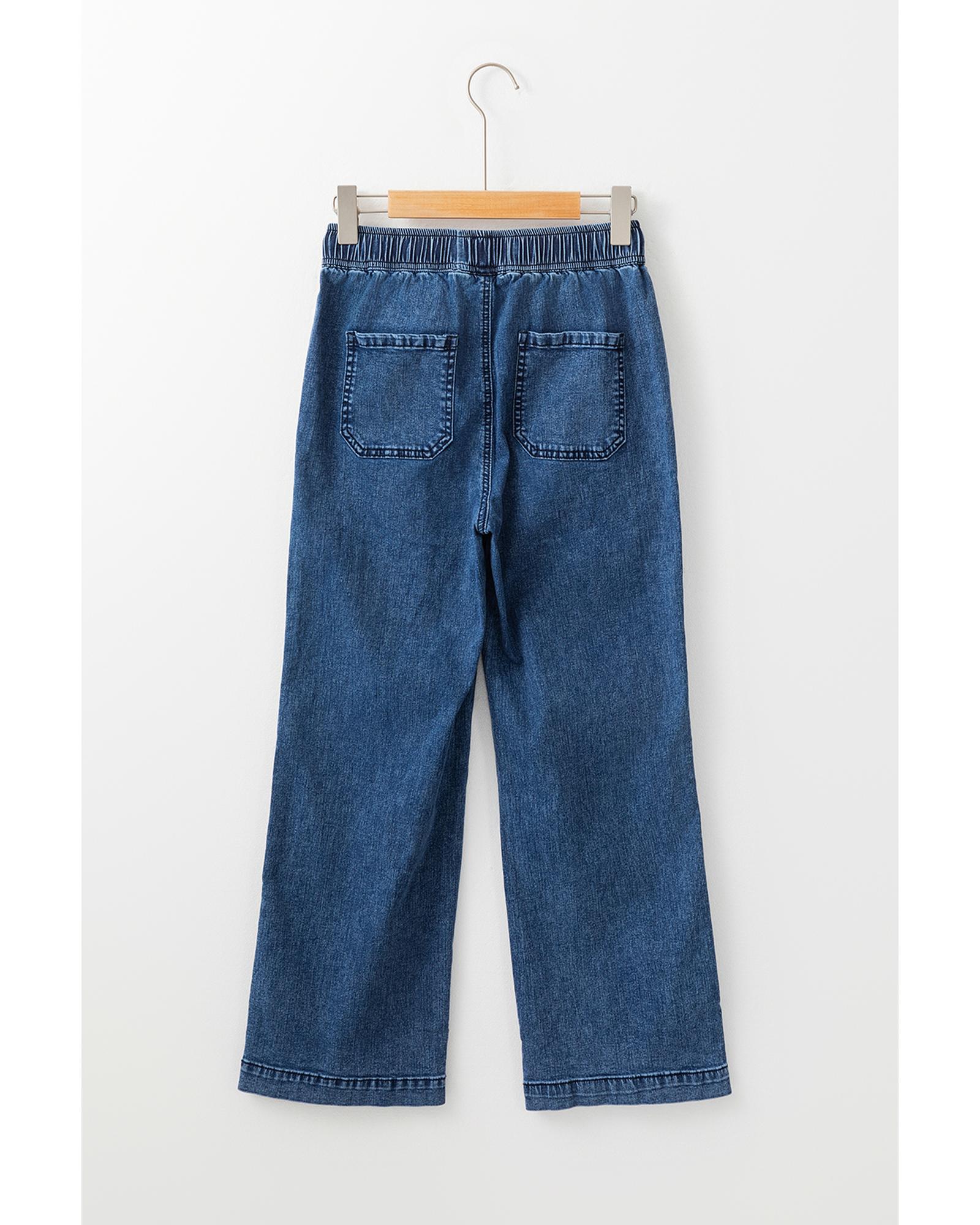 Sail Blue Mineral Wash Drawstring Waist Loose Straight Denim Pants – 8 US