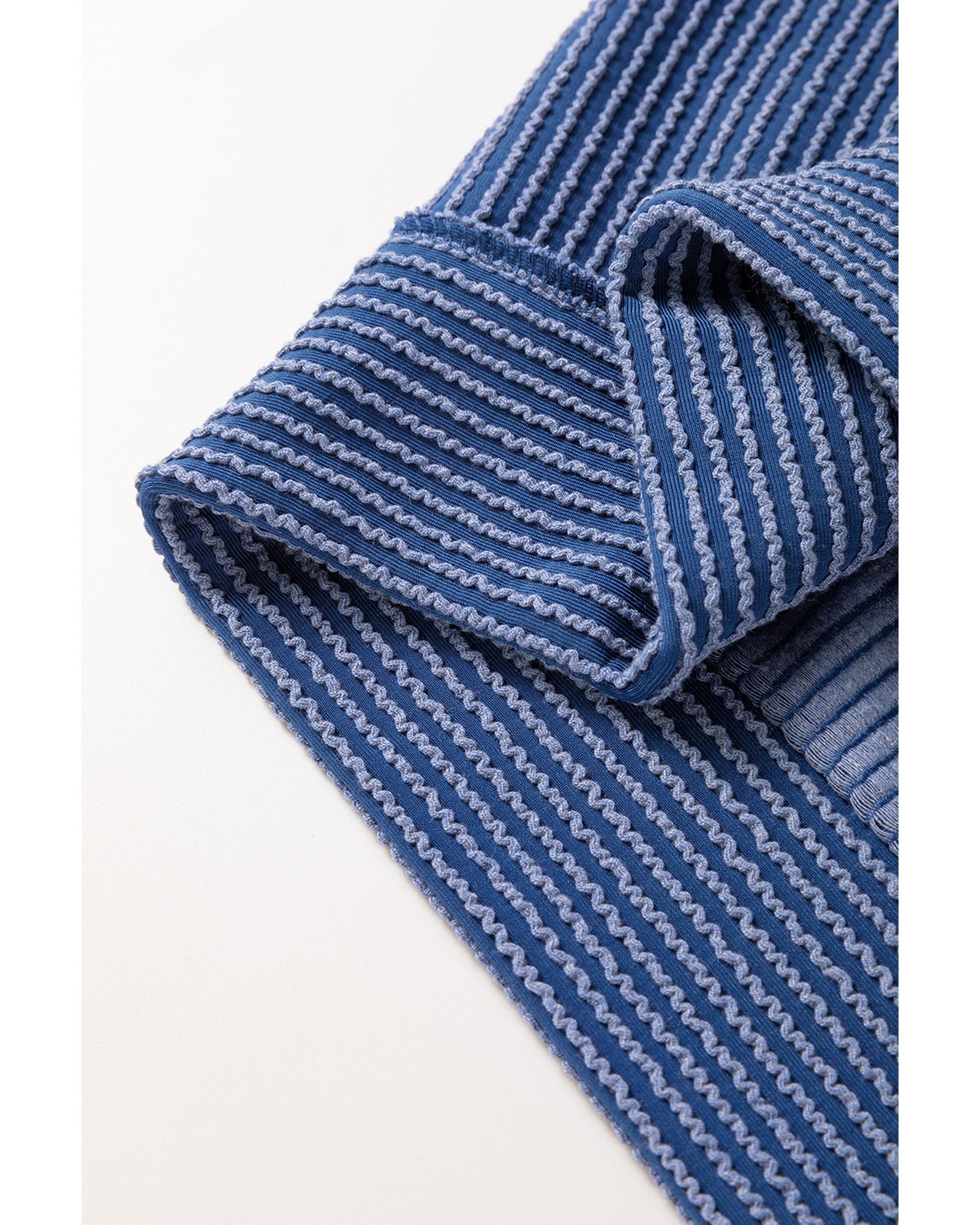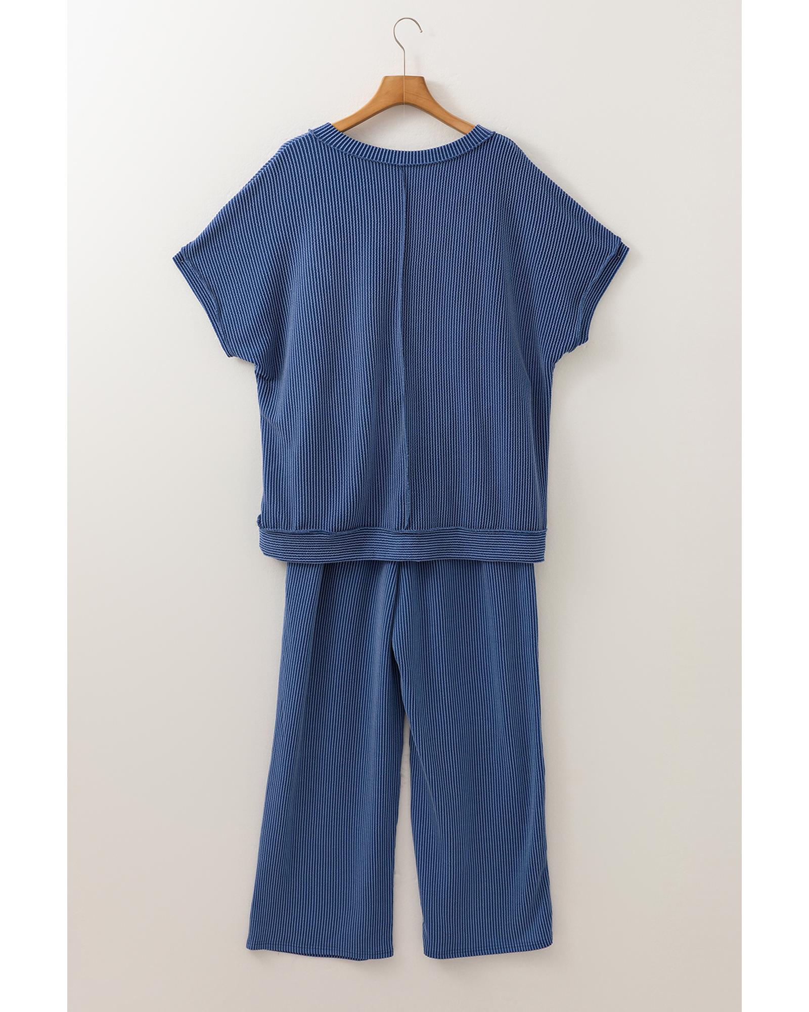Sail Blue Ribbed V Neck Tee and Pants Plus Size Set – 4X