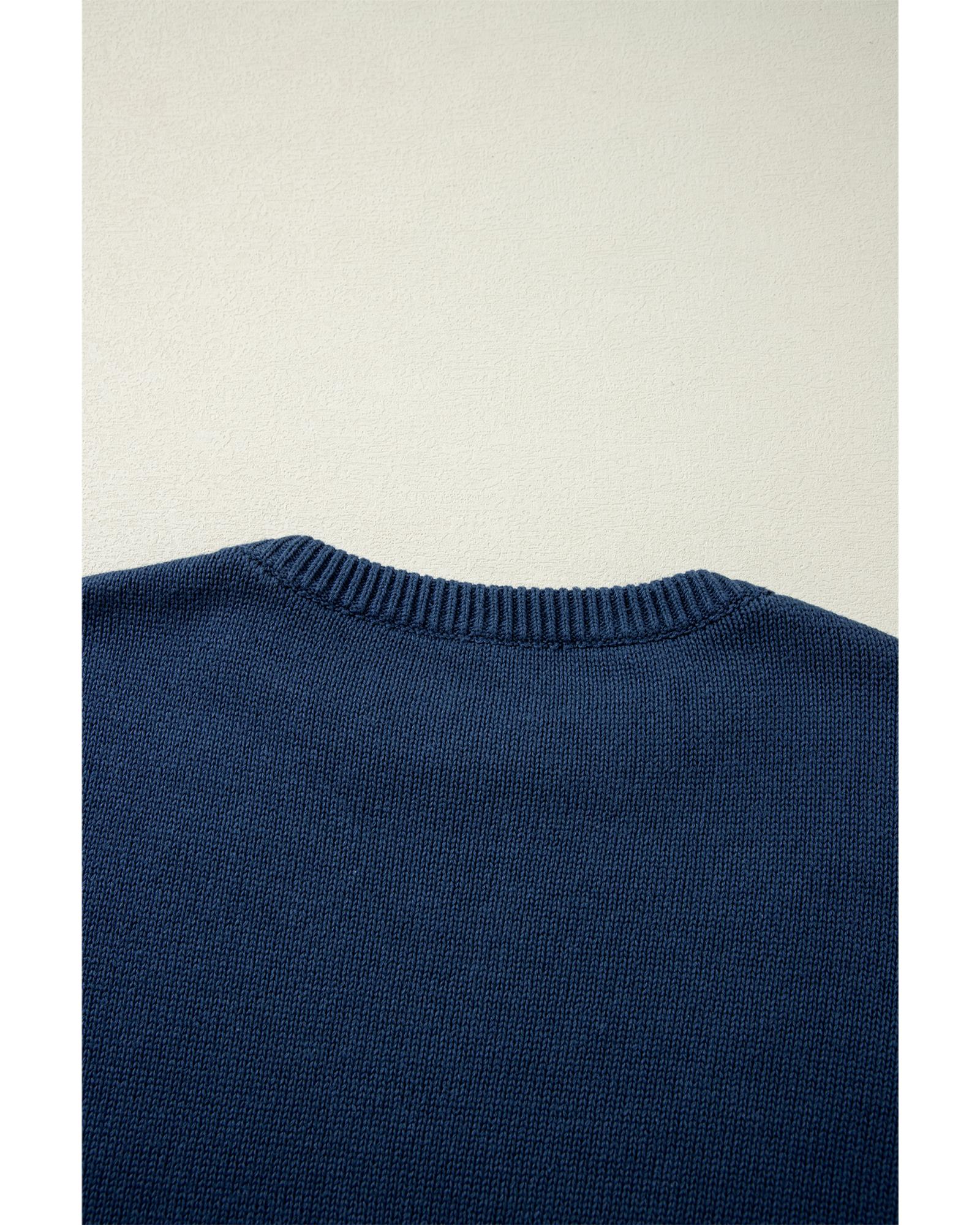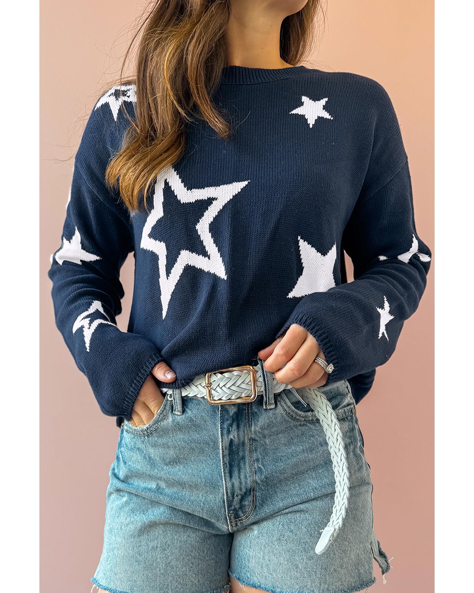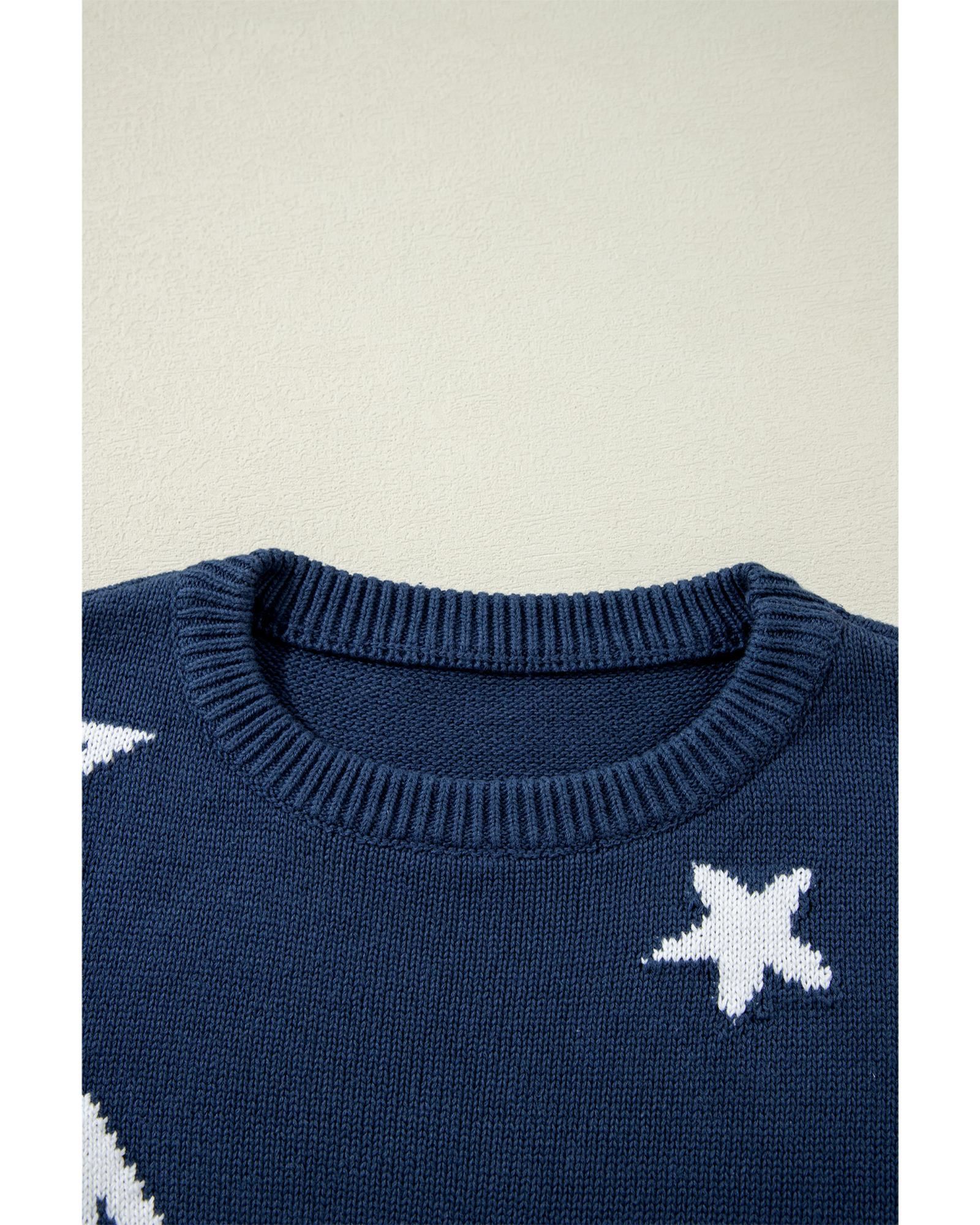 Sail Blue Star Pattern Drop Shoulder Knitted Sweater – XL