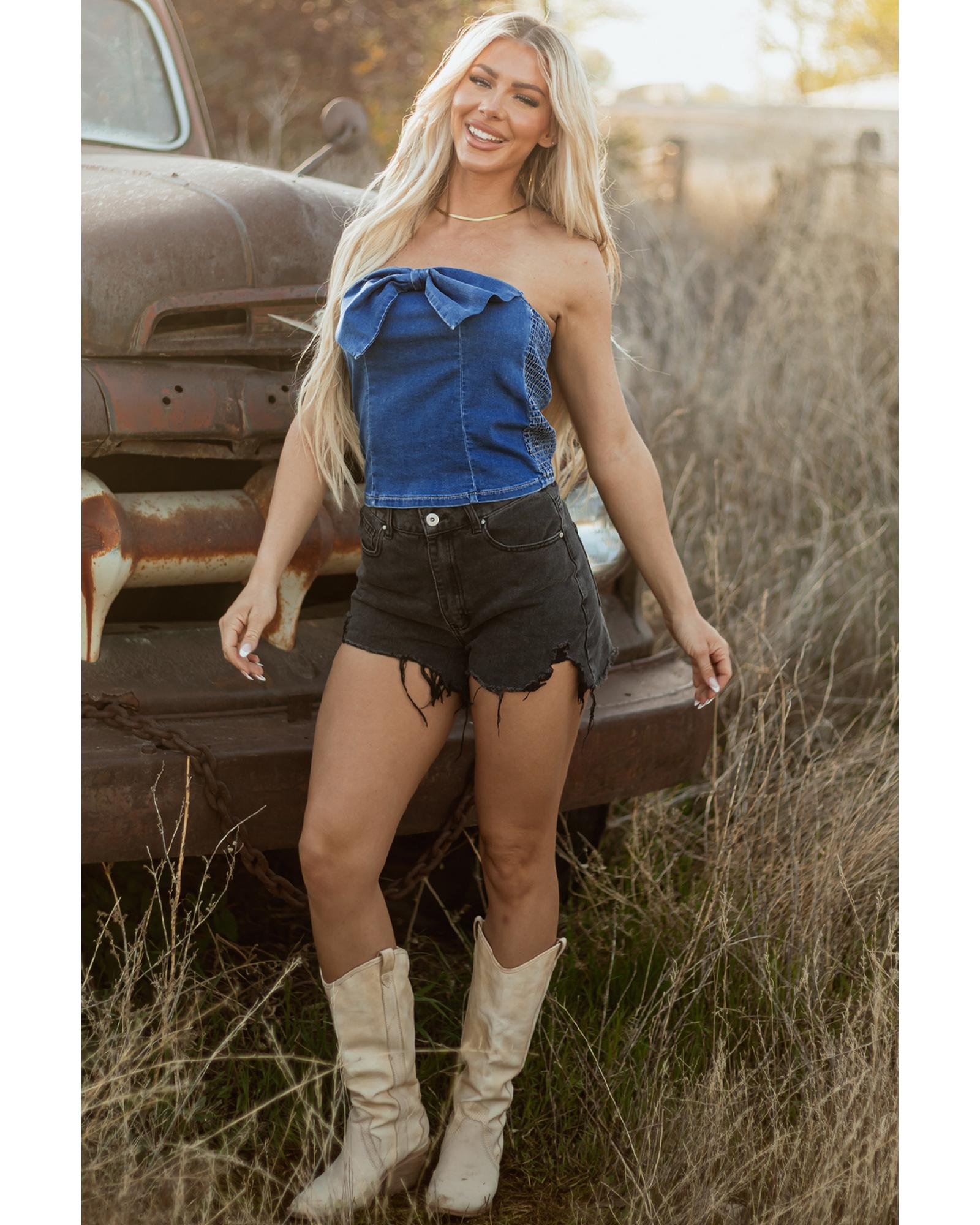 Sail Blue Vintage Bow Front Smocked Back Denim Tube Top – L