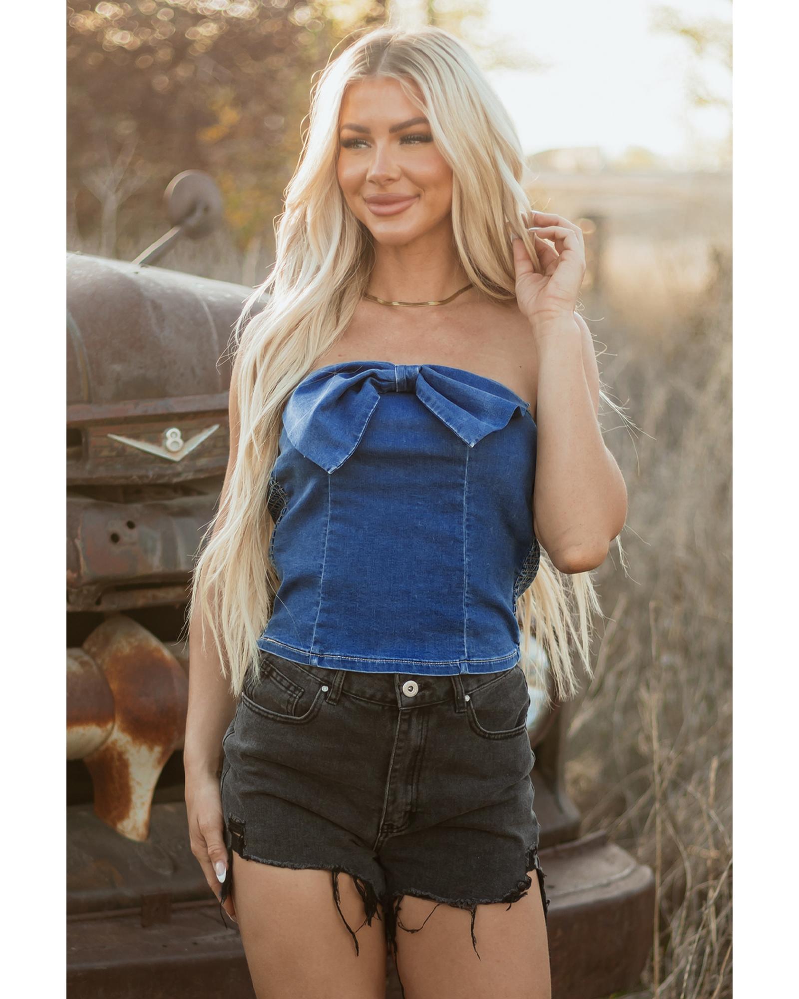 Sail Blue Vintage Bow Front Smocked Back Denim Tube Top – S