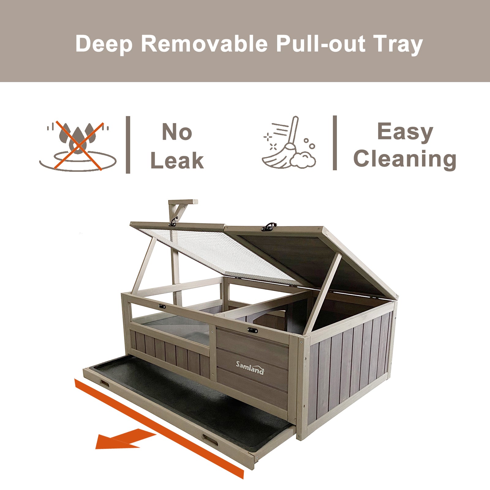 Samland Wooden Tortoise House Cage, Indoor Enclosure House Reptile Habitat Cage Box