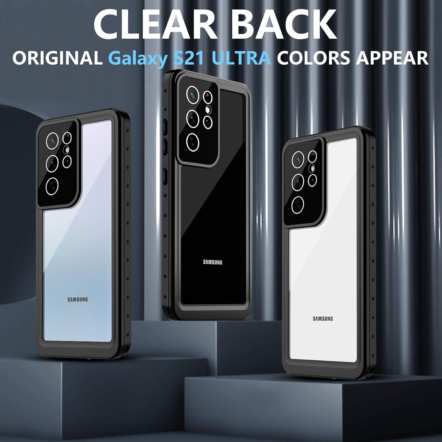 - Waterproof: IP68 Certified Waterproof case, protect your phone from water. Waterproof up to 6.6ft/2m underwater for one hour. Perfect for any underwater activities, outdoor sports and daily use. Samsung Galaxy S21 Ultra Case Waterproof Snowproof Shockproof and Dustproof case cover for Samsung Galaxy S21 Ultra Case waterproof cases Plastic PC +TPU Shell.
