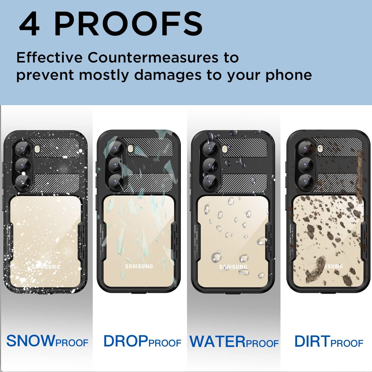 • 【IP68 Certified Waterproof】Underwater full sealed IP68 Certified Samsung Galaxy S23 Plus waterproof case, designed and tested to submersible to 6.6-10ft/2-3m for 30 minutes, and it Can take pictures underwater.
