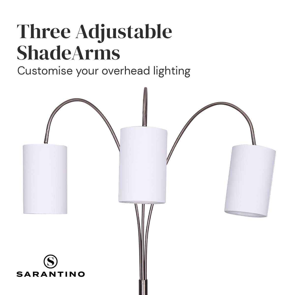 - 3 adjustable shade arms